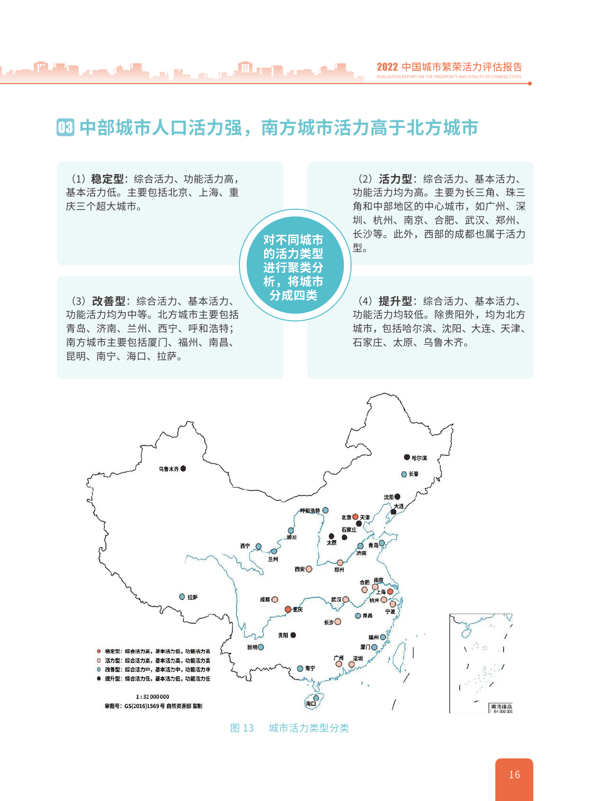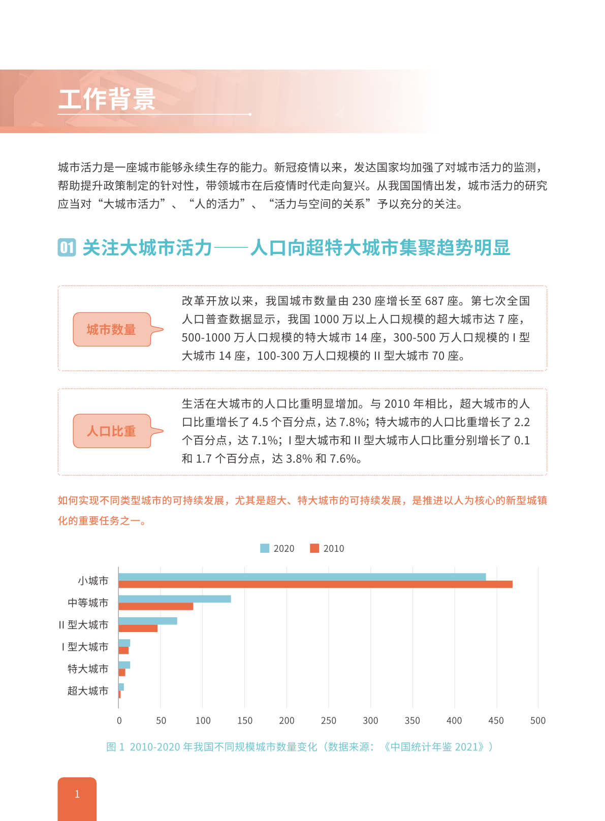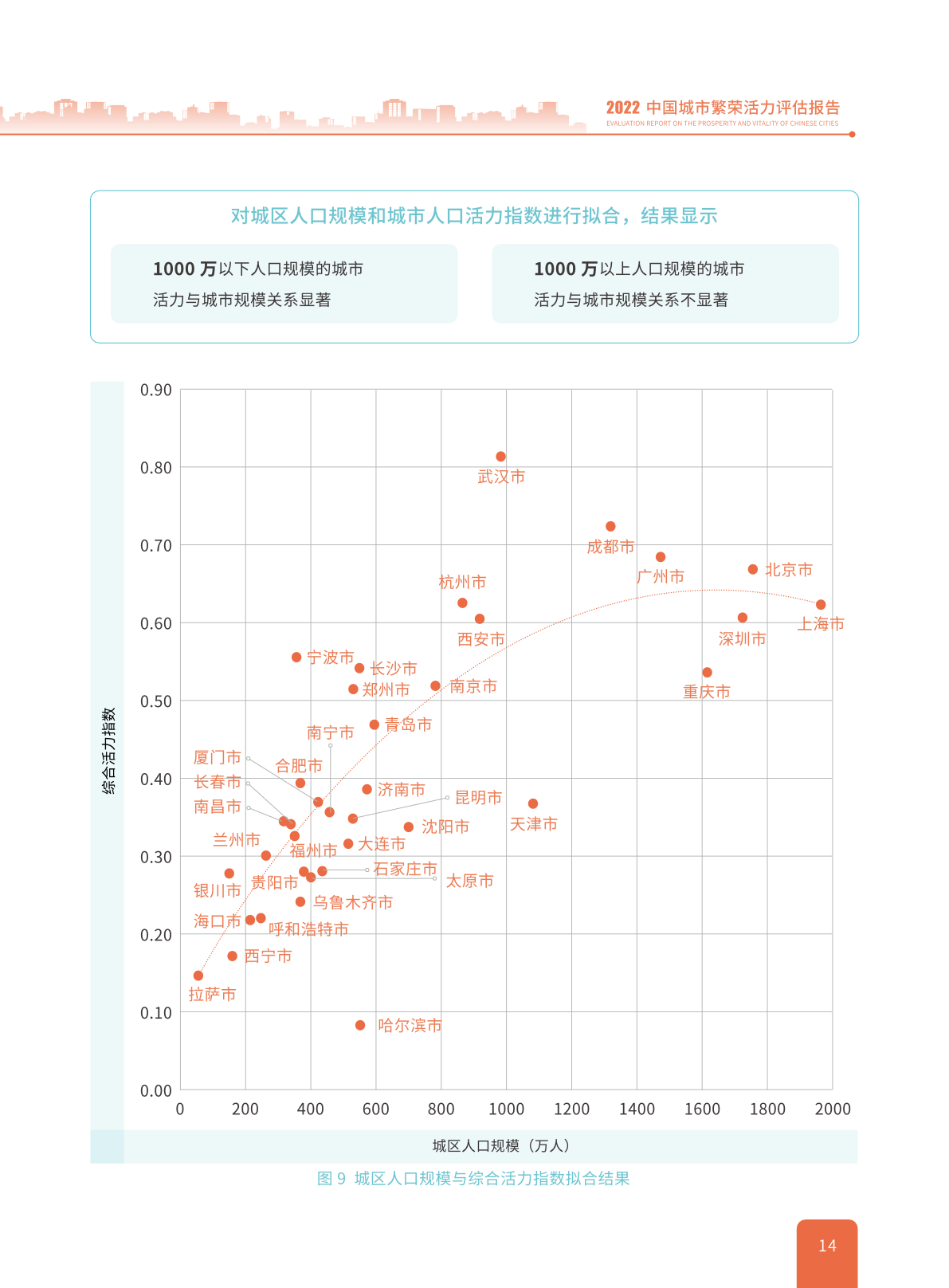 《报告》的主要结论:一是城市人口活力与城市规模成正相关,千万左右规模城市的活力最强;二是城市活力存在区域差异,中部城市人口活力强,南方城市活力高于北方城市;三是城市基本活力与居住、交通功能关联强;功能活力与产业、服务功能联系密切。