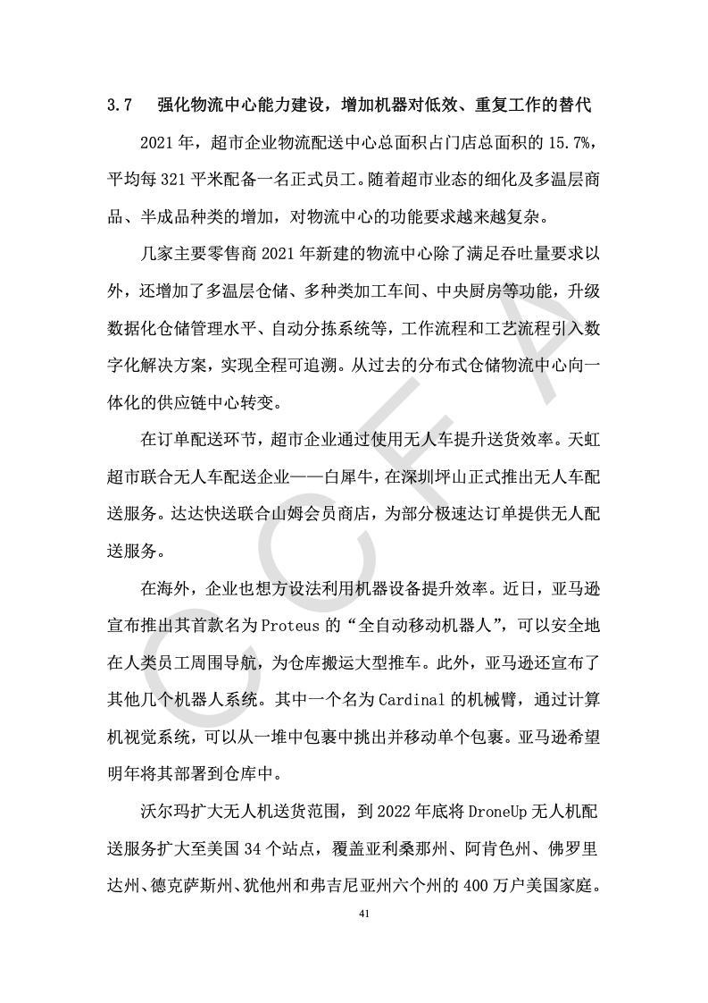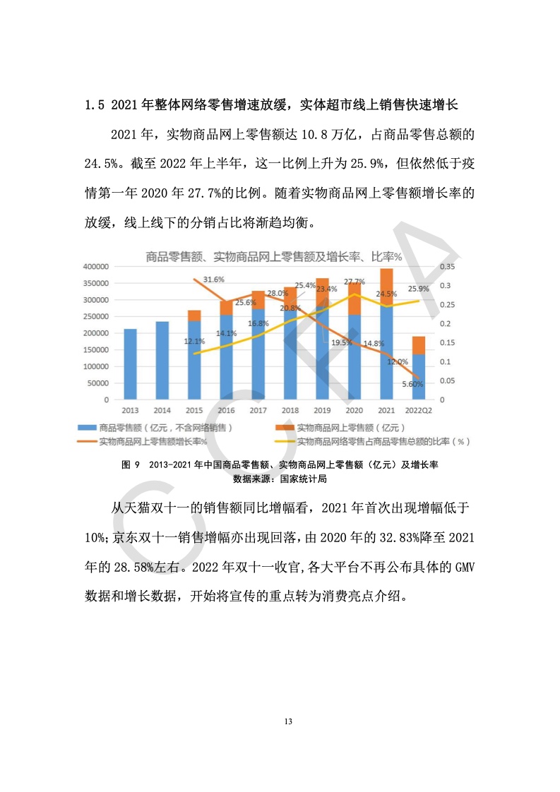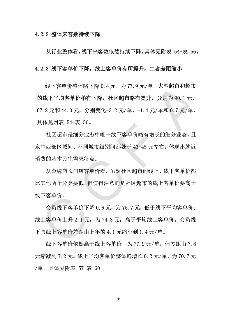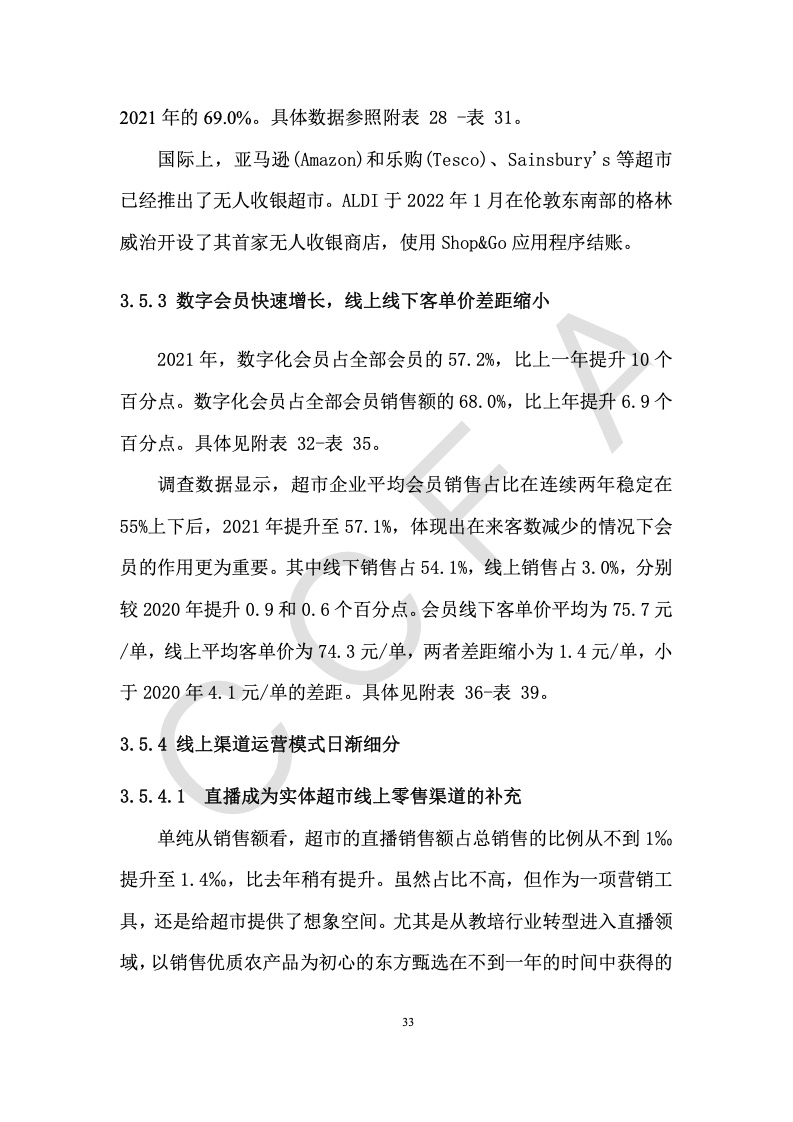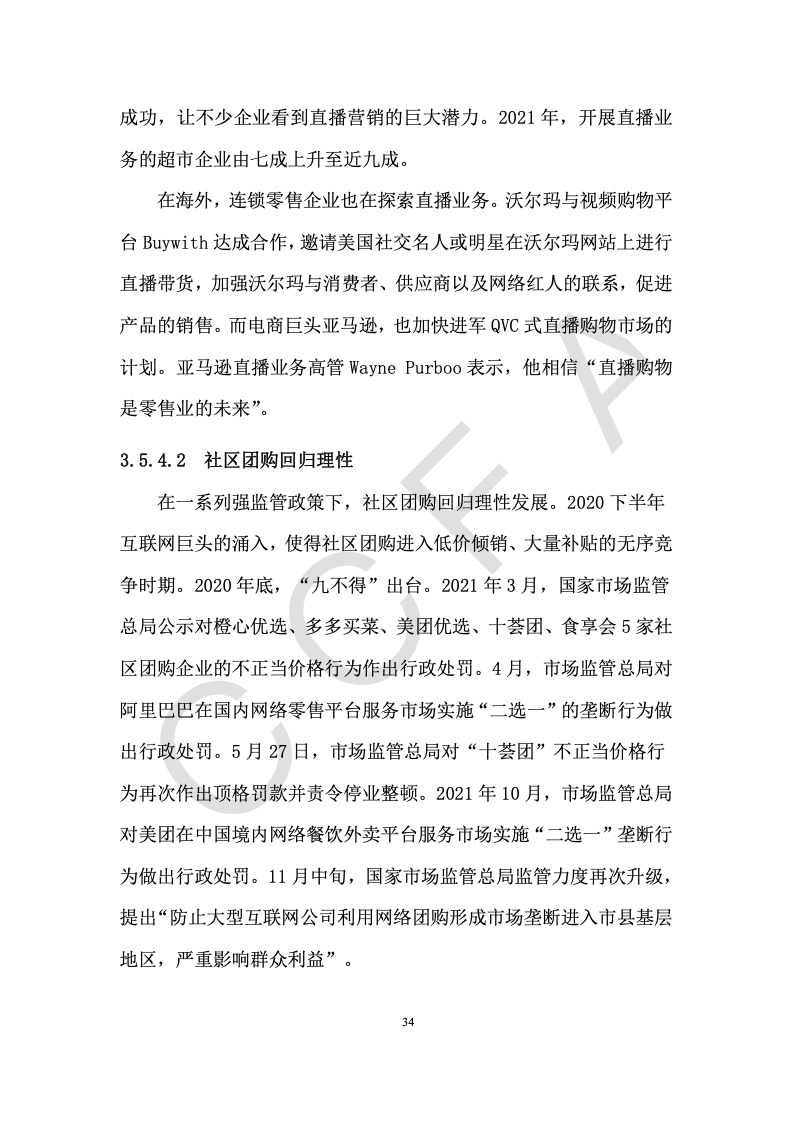 4.全渠道融合继续深入,线上渠道运营模式日渐细分。直播成为实体超市线上零售渠道的补充;社区团购回归理性;即时零售快速发展。但线上业务实现赢利依然是大多数企业面临的挑战。