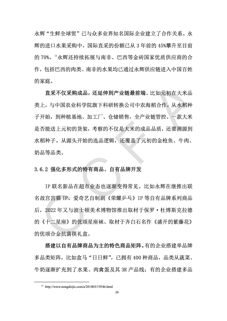 5.强化供应链建设。优化采购源头,加强直采基地构建与规划,部分企业已从产业链最前端进行品质管控。 强化多形式的特有商品、自有品牌开发,利用IP联合打造新品。提升供应链效率,打造柔性供应链。强化物流中心能力建设,增加机器对低效、重复工作的替代。