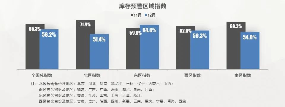 从区域指数情况看:12 月全国总指数为 58.2%,北区指数为 51.4%,东区指数为 64.6%,西区指数为 56.3%,南区指数为 54.0%。北京、河北、四川等汽车消费大省,在 12 月上旬疫情感染达峰,中旬开始汽车消费率先恢复。