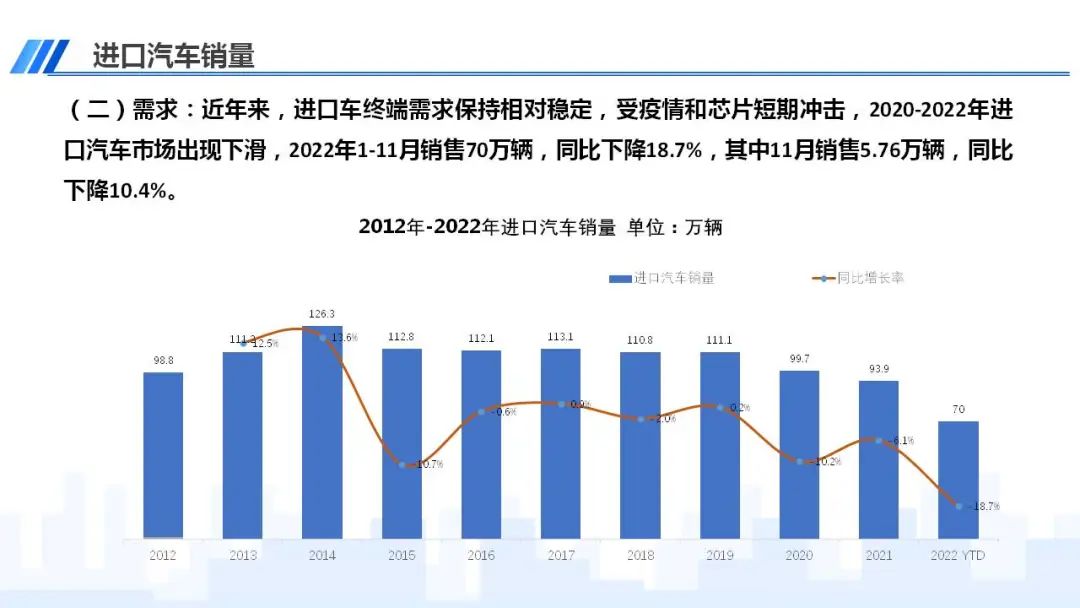 中国汽车流通协会:2022年11月中国进口汽车市场情况 更多阅读:中国汽车流通协会:2020年4月中国进口汽车市场月报中国汽车流通协会:2022年8月中国进口汽车市场情况分析中国汽车流通协会: 2023年1-2月中国进口汽车市场情况中国汽车流通协会:2023年5月中国进口汽车市场情况中国汽车流通协会:2023年7月中国进口汽车市场情况中国汽车流通协会:2024年4月中国进口汽车市场情况中国汽车流通协会:2022年7月中国进口汽车市场情况中国汽车流通协会:2020年3月份国内狭义乘用车市场销量达104.5万辆 同比下降40.4%中国汽车流通协会:2022年5月中国进口汽车市场情况中国汽车流通协会:2022年4月中国进口汽车市场情况中国汽车流通协会:2022年4月中国进口汽车市场情况分析中国汽车流通协会:2020年8月中国进口汽车市场月报中国汽车流通协会:2022年6月中国进口汽车市场情况分析中国汽车流通协会:2024年5月中国进口汽车市场情况中国汽车流通协会:2023年4月中国进口汽车市场情况