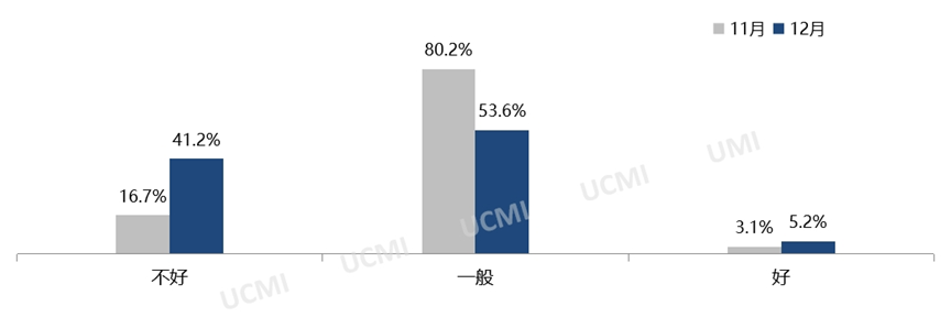 调查显示,二手车经理人认为2022年12月份的经营状况不好,认为经营状况“不好”的经理人比例为41.2%。
