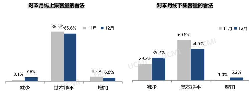 调查显示,12月份线上集客量基本持平、线下集客量有所减少。其中认为线上集客量“持平”的二手车经理人比例为85.6%;认为线下集客量“减少”的经理人比例为39.2%。