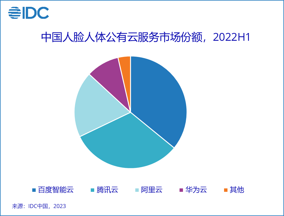 人脸人体识别技术正在进入成熟期。主要应用场景由发展成熟的安防、金融等领域向工业、医疗、零售等领域渗透。未来3D识别技术以及低质量人脸人体识别技术是业界关注的重点。2022上半年同比2021上半年人脸人体公有云服务市场规模仅有38%的增长,市场进入平稳期。在该领域,百度智能云、腾讯云、阿里云占据前三的市场份额。