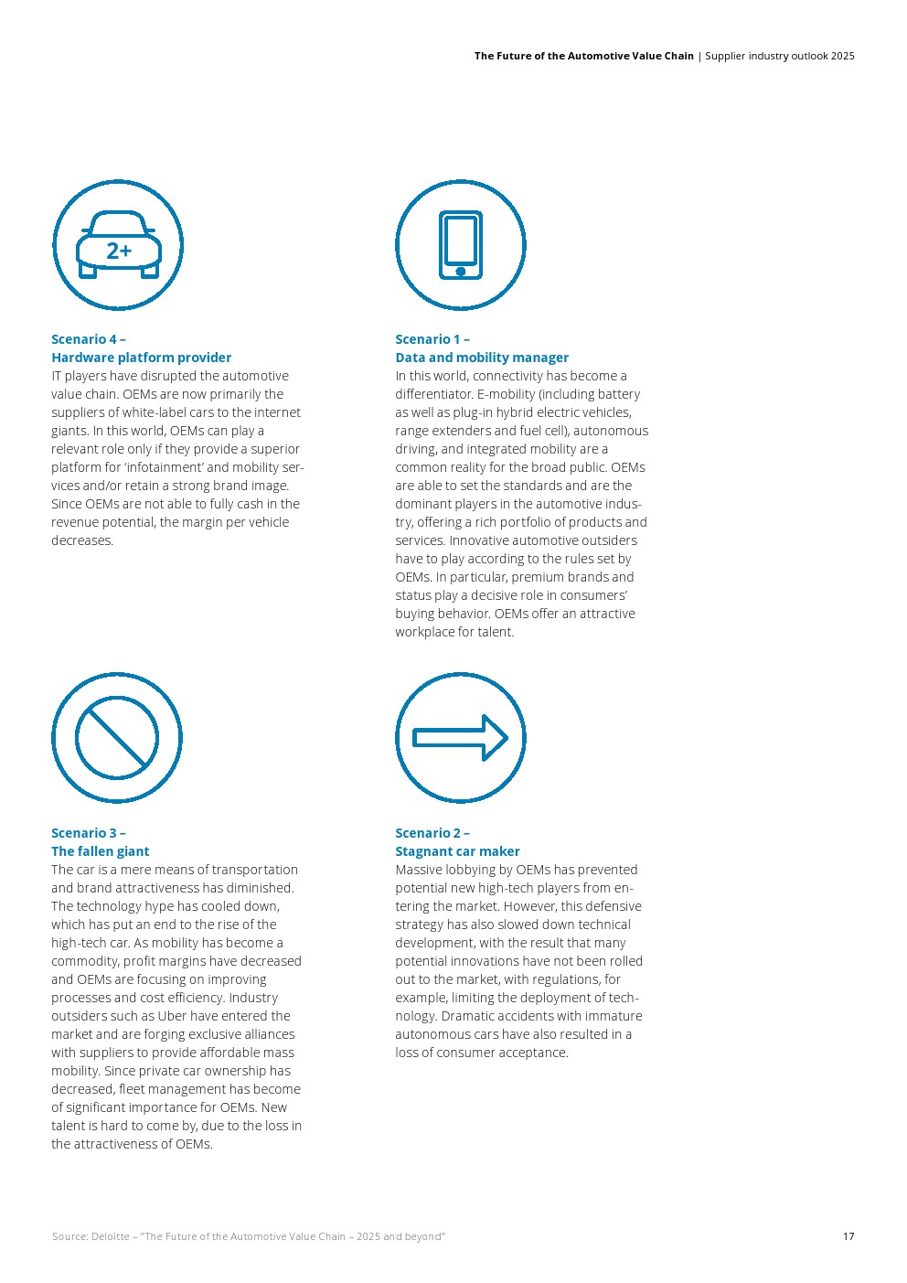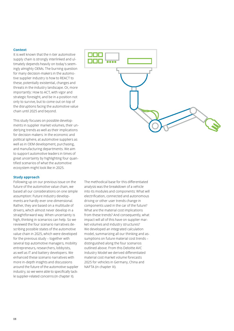 汽车业者正面临颠覆性的时代。在汽车价值链(AVC)报告中,德勤广泛研究并发布了当前行业趋势。历史性的变化不仅仅影响原始设备制造商,这项研究正在进一步深入价值链,试图阐明供应商市场的影响。