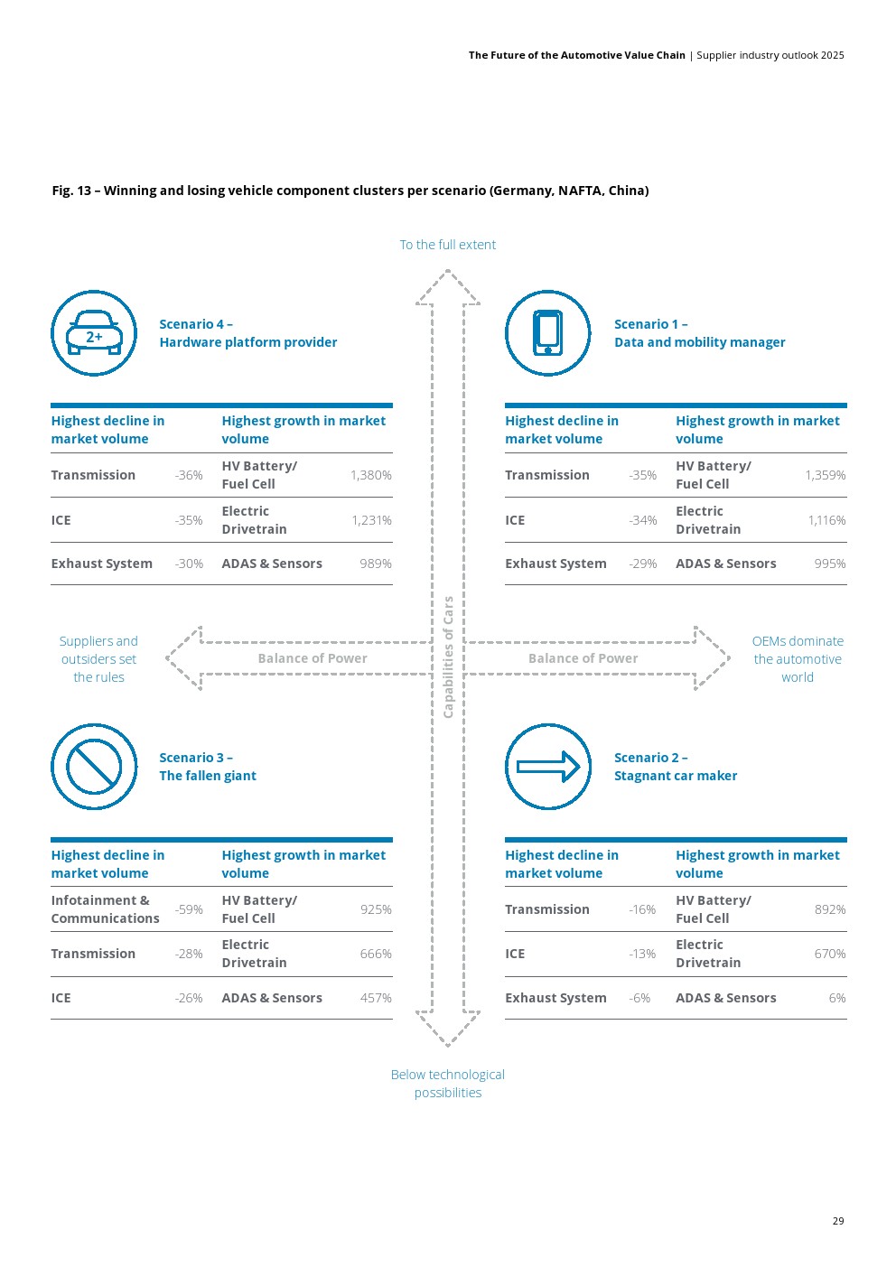 可能的获胜者必须准备好管理和满足高达其当前数量 15 倍的不断增长的需求,例如 在电动传动系统和电池技术以及自动驾驶功能开发领域拥有股份的供应商。