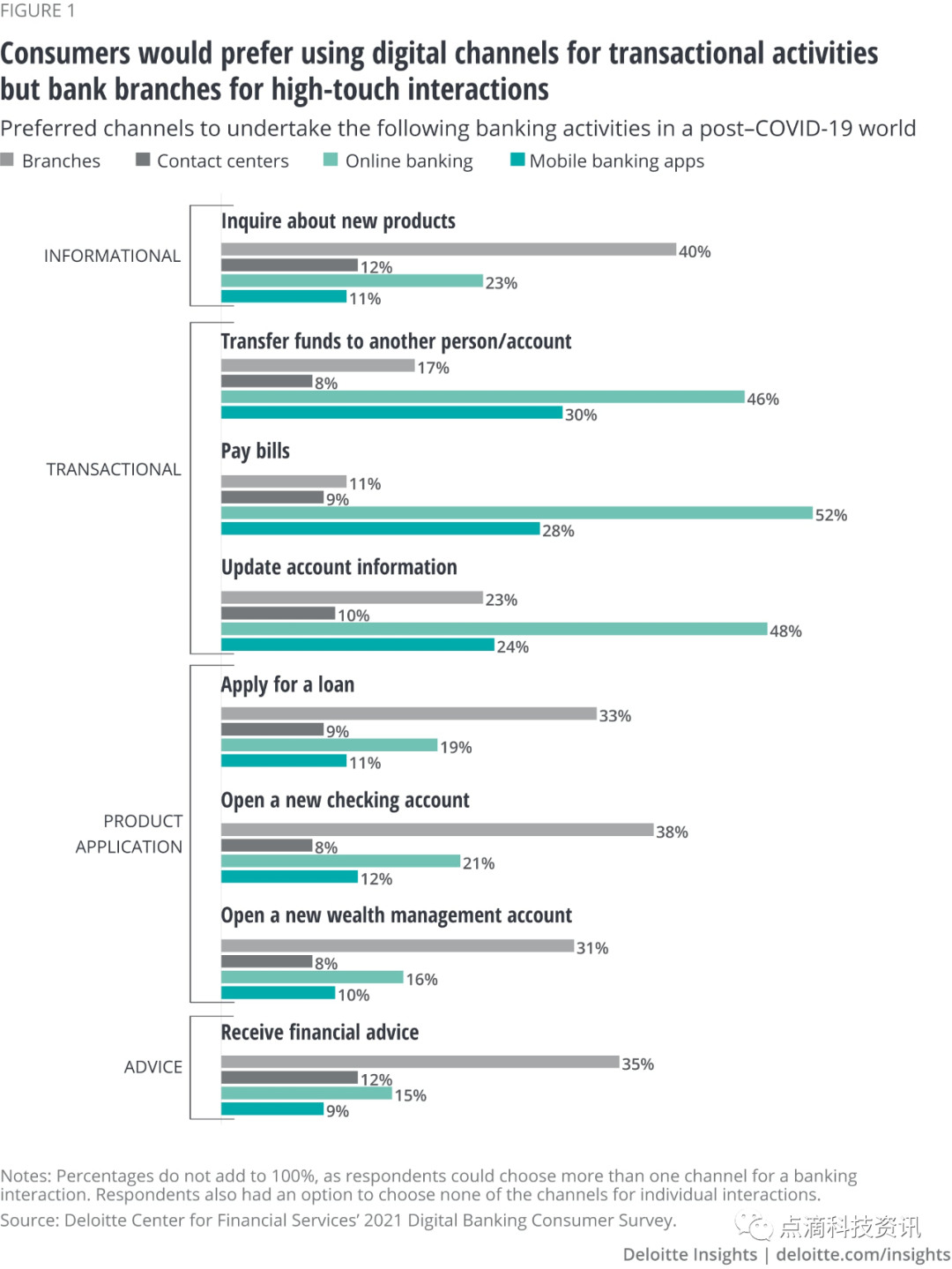 然而,仅靠移动应用不足以满足不断膨胀的期望。为了提供整体服务,银行需要提供多种参与选项,从自助服务平台到与客户服务代理的面对面互动。更重要的是,这包括维护线下渠道,同时开发新的线上渠道。尽管24%的消费者预计未来光顾网点的频率会降低,但82%的消费者仍表示,他们认为本地网点的存在极其重要或非常重要(安永)。