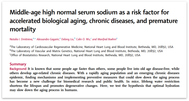 [1] N. I. Dmitrieva, A. Gagarin, D. Liu, et al., Middle-age high normal serum sodium as a risk factor for accelerated biological aging, chronic diseases, and premature mortality. eBioMedicine, (2023).