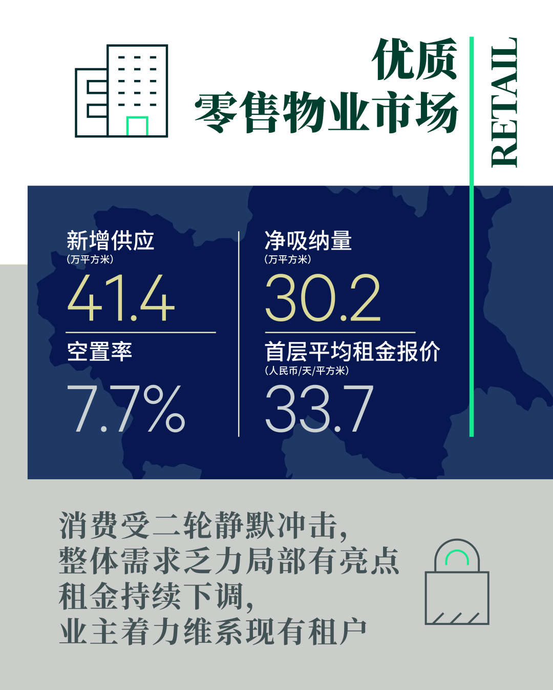 季内市场经历全年第二轮静默期,对消费活动影响凸显,各大商圈皆有不同程度的掉铺现象,全市空置率环比上浮0.5个百分点至7.7%。全年累计净吸纳量30.2万平方米,主要集中在新开业项目聚集的丰台、朝阳、大兴等区,同期核心商圈的黄金地段更新迭代活跃不减。