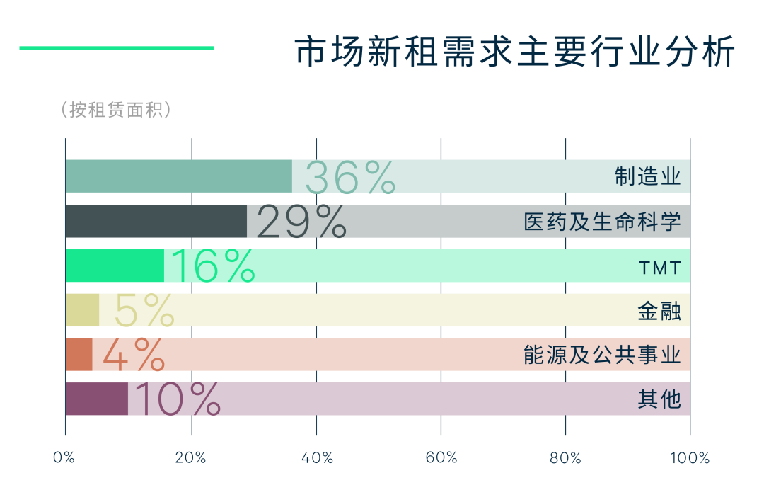 2022年第四季度,北京商务园区市场迎来四个新项目交付使用,共计体量27.9万平方米,至此全年新增供应量达到60.5万平方米。2022年迎来生命科学地产的供应小高峰,全年8个新项目中有6个定位医药及生命科学专用,分布在大兴及经开区。在产业发展及政府产业导入支持下,此类新项目交付时均有不错去化表现,同时也为市场带来更多高品质、功能性的可租赁面积。