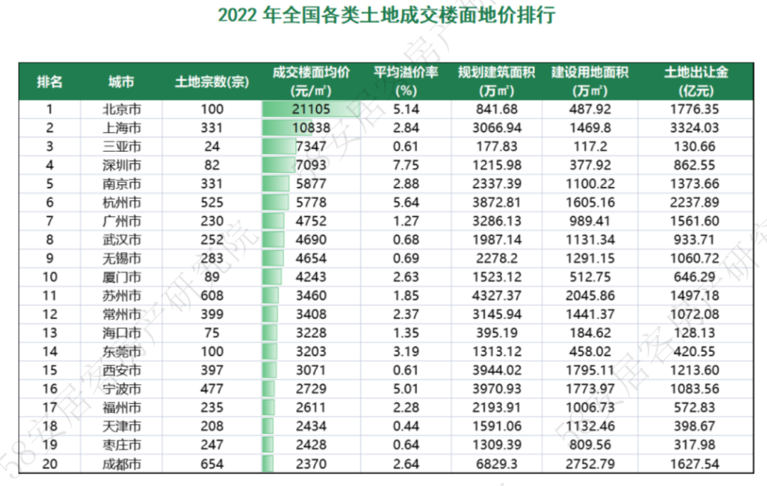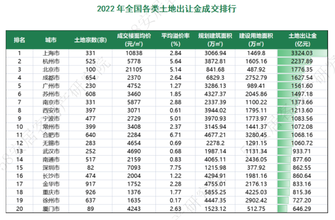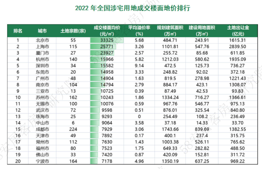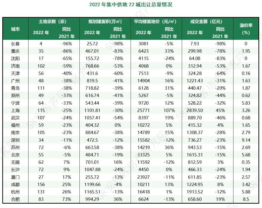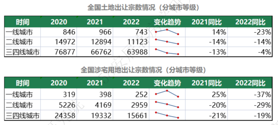 1.连续两年下滑,一线城市2022年土地出让收缩明显