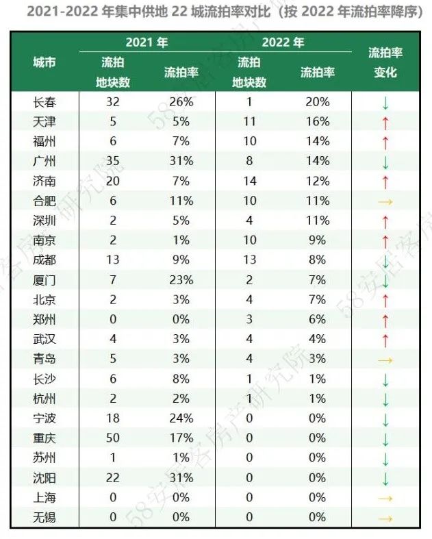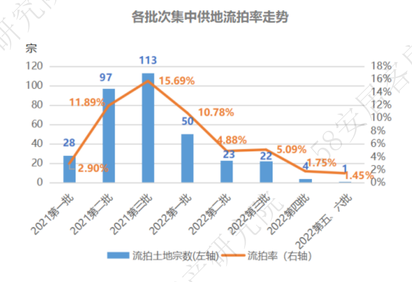 58安居客房产研究院分析师许之静指出,从2021年第二批次开始出现了流拍率高企的情况,2022年各地政府采取了有力措施,如提前预申请制度,或者将大宗地块分割成小幅地块出让,以及根据市场反馈情况及时下架可能“无人问津”的地块,对抑制流拍率高企起到的有效作用。
