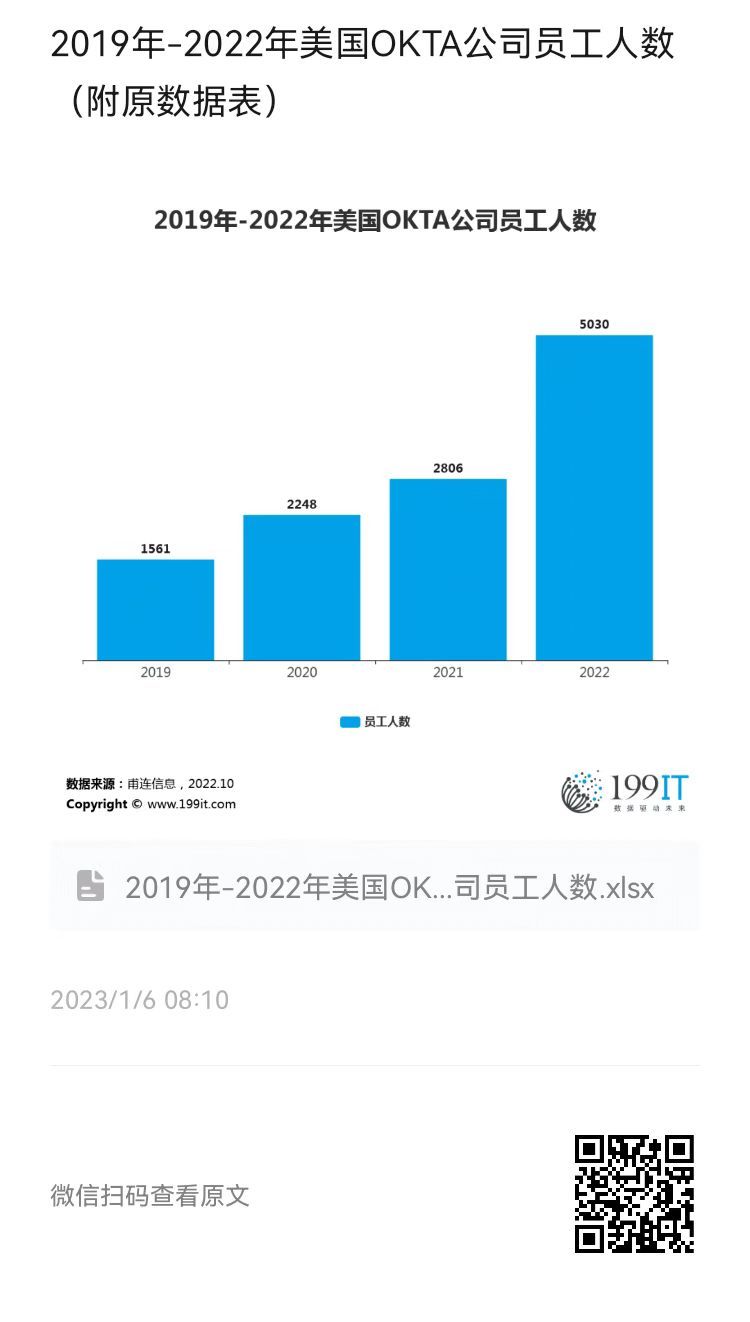 2019年-2022年美国OKTA公司员工人数(附原数据表) ​​​​