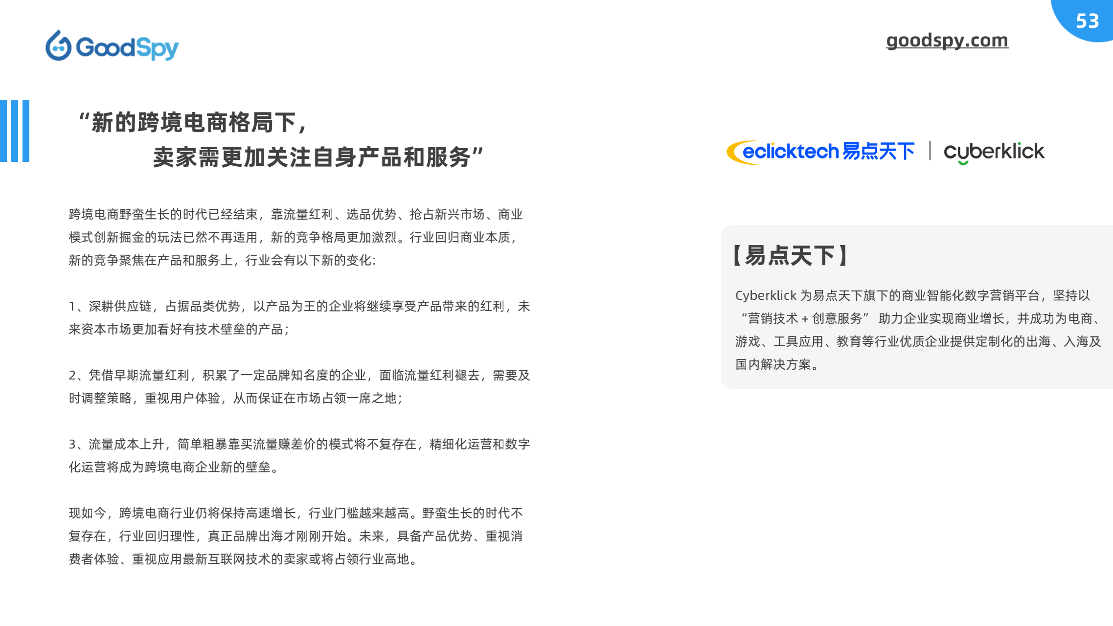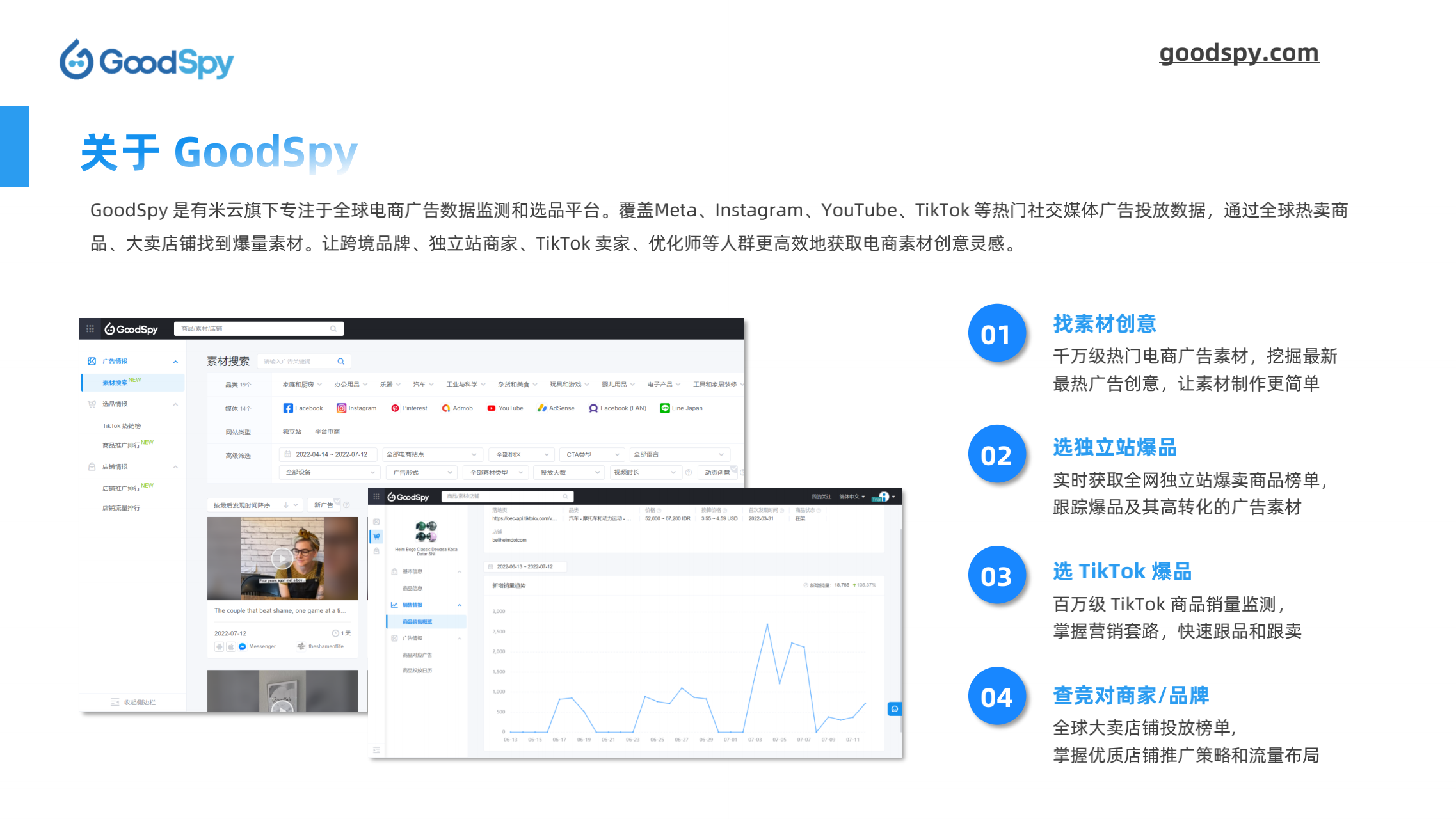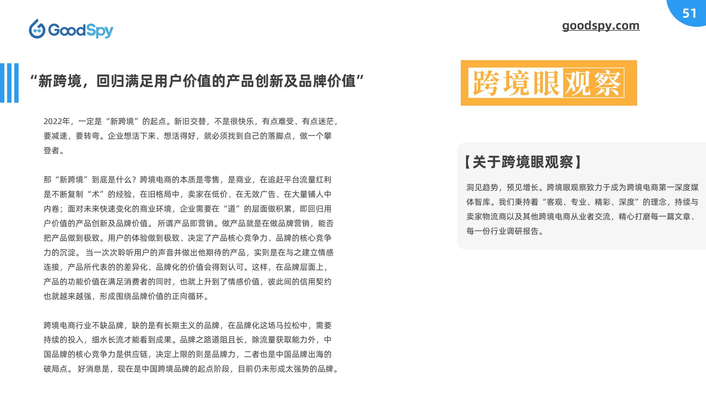 本报告由 GoodSpy 发布,同时邀请 Enjoy出海、猎豹移动、跨境眼观察、跨境知道、易点天下、AMZ123-品牌方舟 等行业上下游共同探讨,从全球独立站广告投放洞察、全球重点市场分析、DTC品牌案例拆解和行业观点四大方面为跨境商家提供市场、选品、营销等方面的情报和洞察。