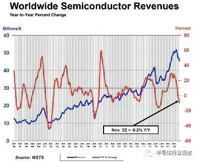 近日,半导体行业协会 (SIA) 宣布,2022 年 11 月全球半导体行业销售额为 455 亿美元,比 2022 年 10 月的 469 亿美元总额下降 2.9%,比 2021 年 11 月的500亿美元总额下降 9.2% 。