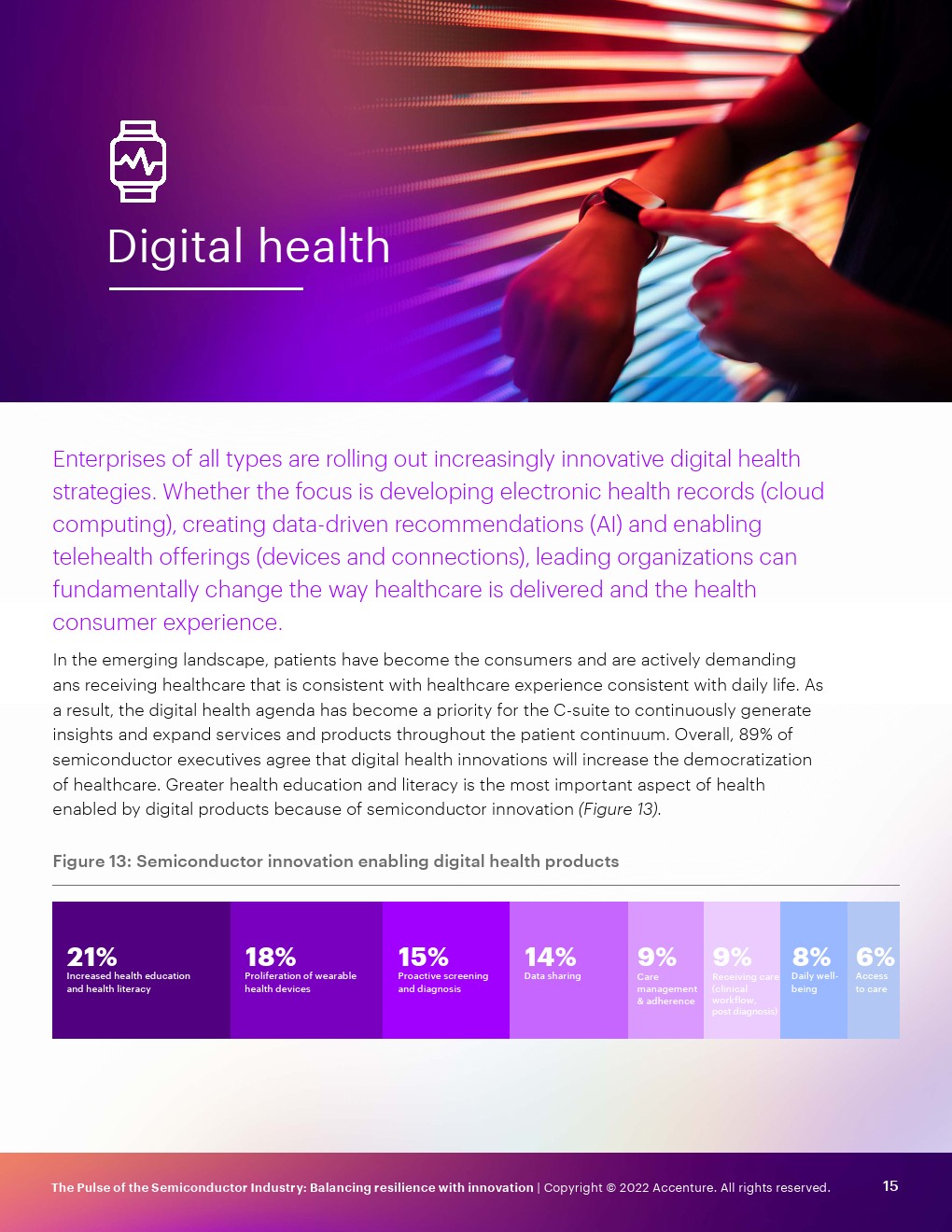 数字健康——健身追踪器和智能手表代表了该行业最大的增长机会,因为这些流行的设备将从半导体支持的连接性改善中获益最多。