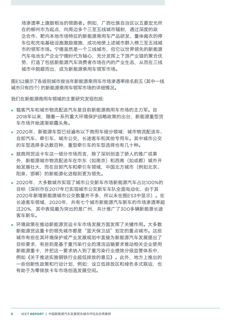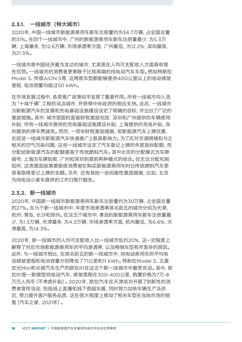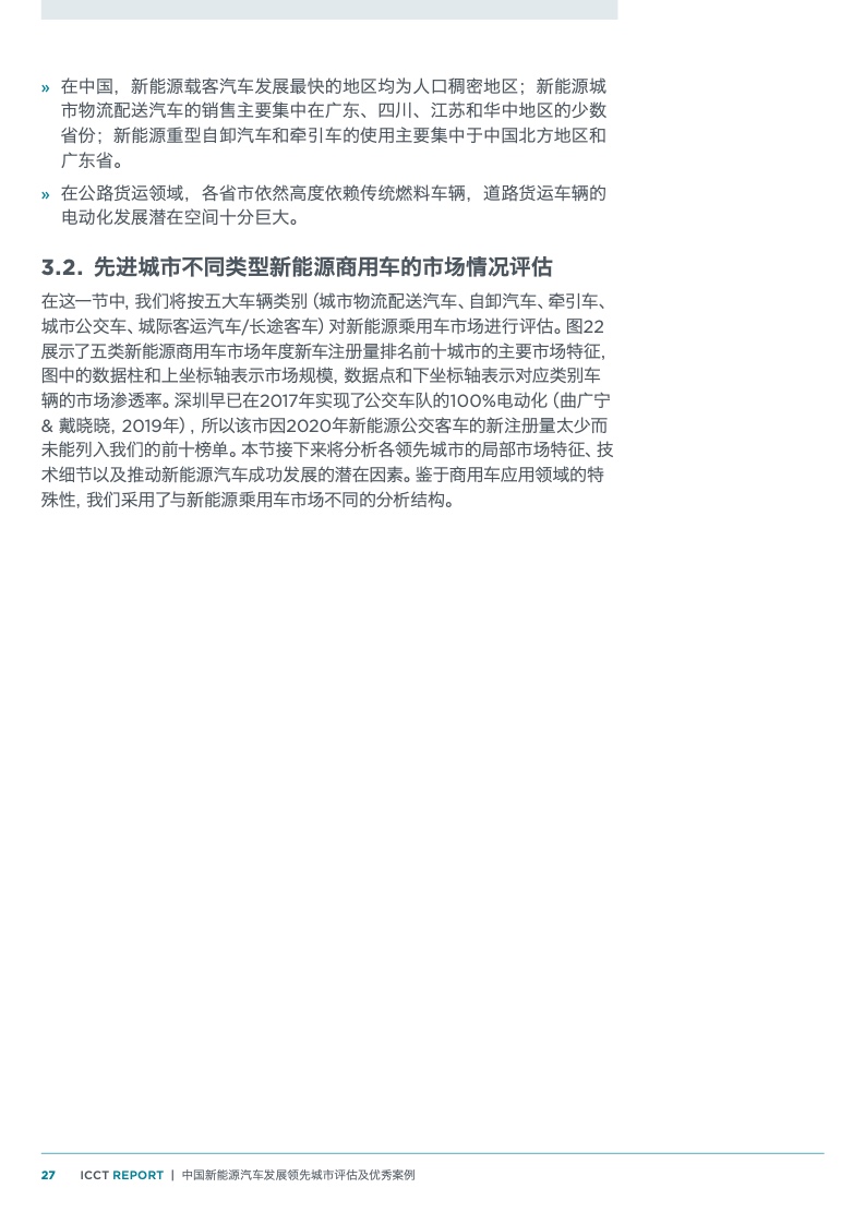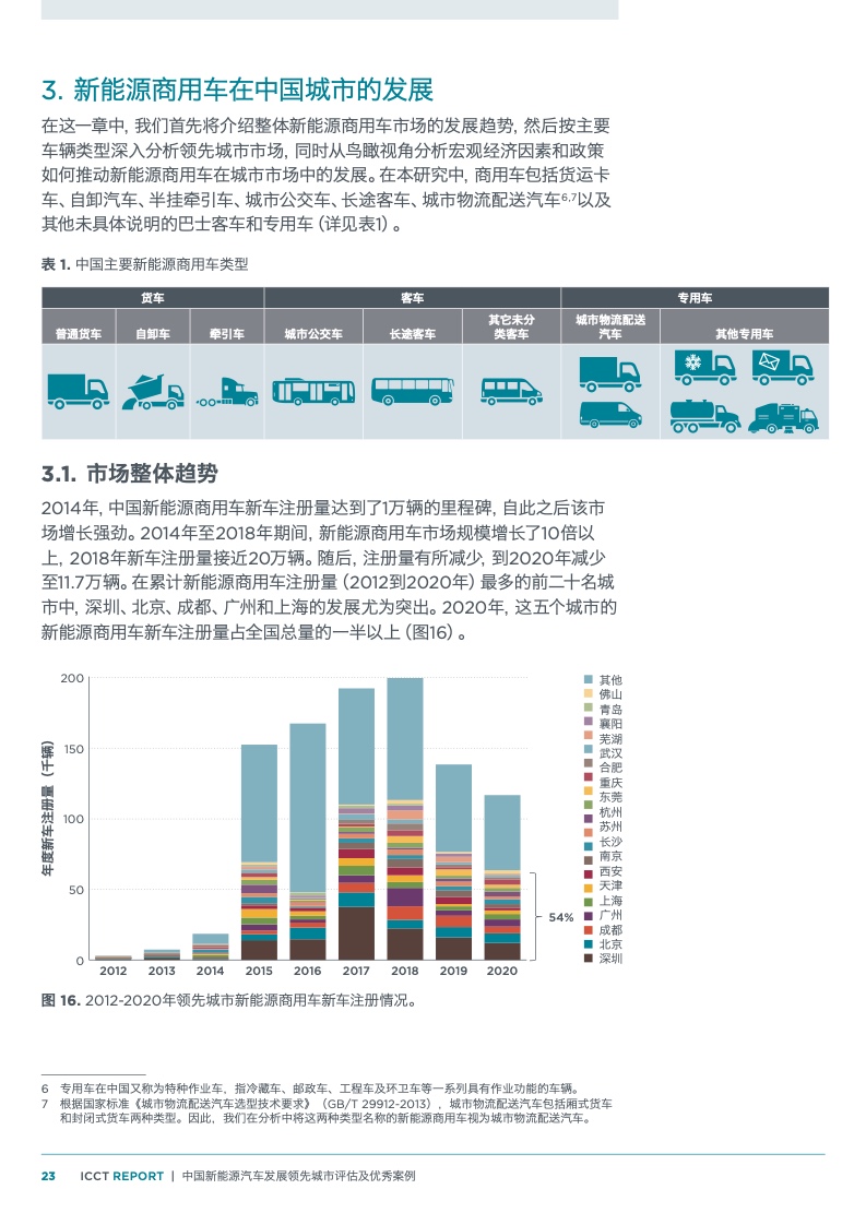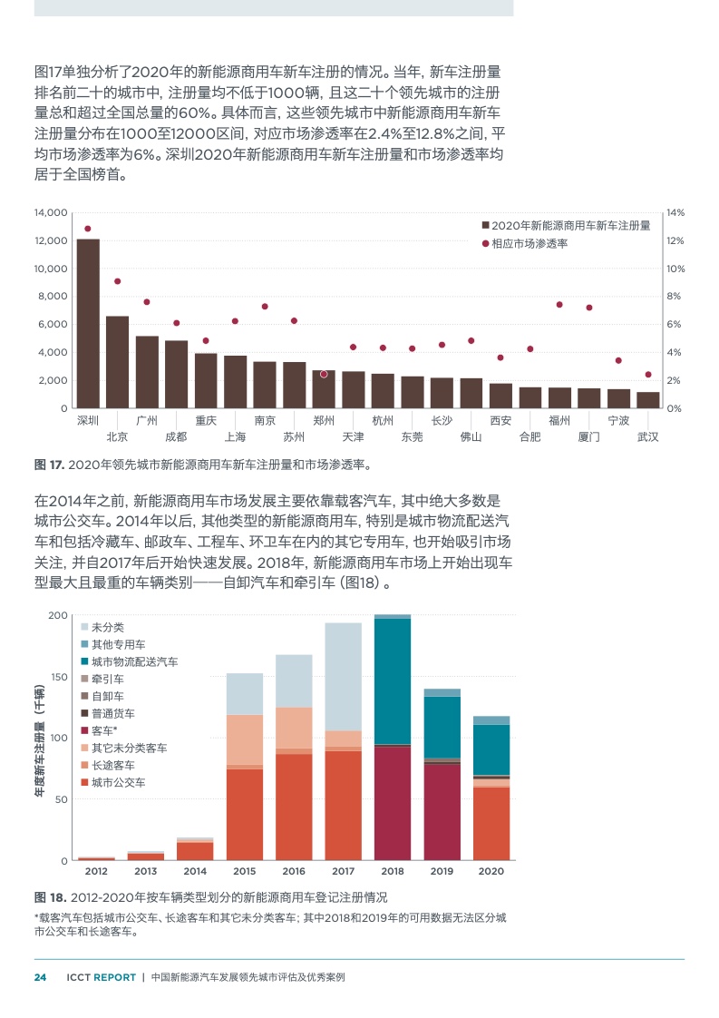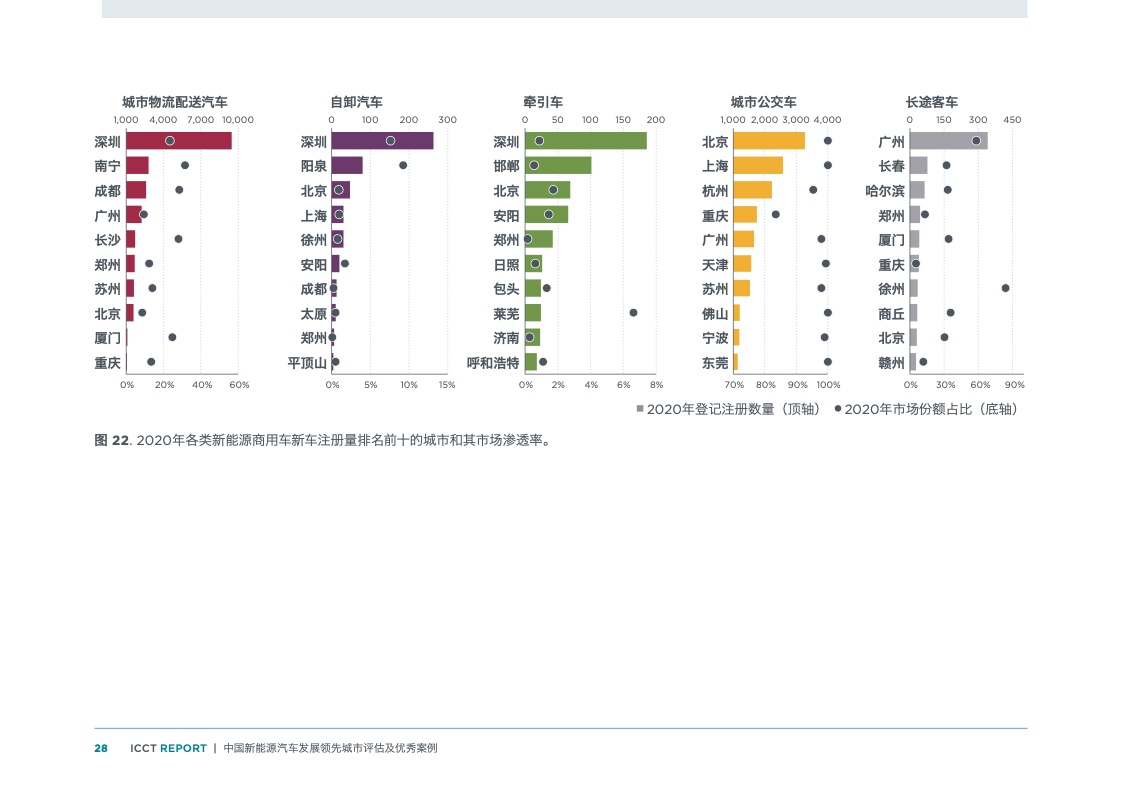 根据新能源乘用车和商用车市场的不同特征,本文采用了不同的标准来判定领军城市。新能源乘用车市场规模较大,我们依据当年新能源乘用车占所有类型乘用车注册量的比例来筛选领军城市。新能源商用车市场规模仍在发展初期,我们则依据新能源商用车的年度销量来判定领军城市。