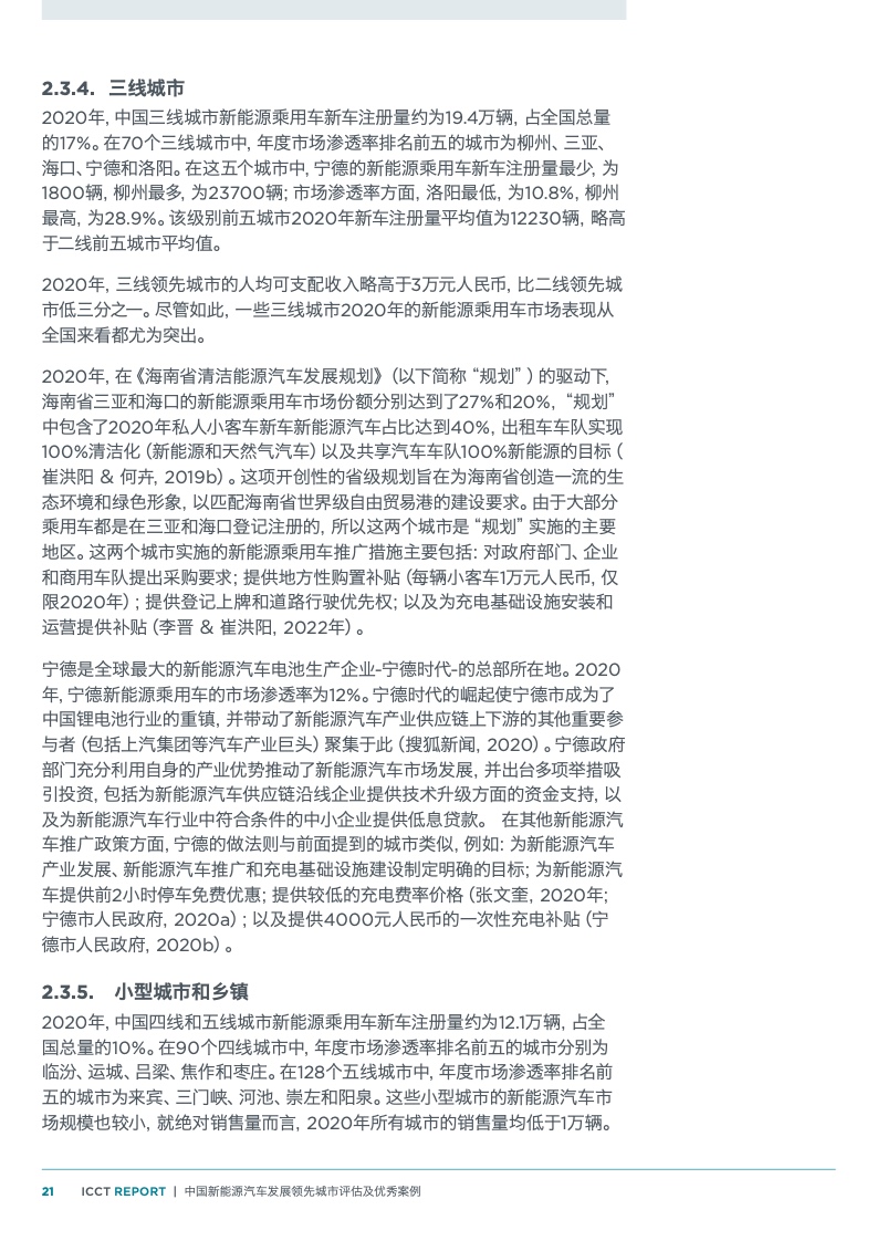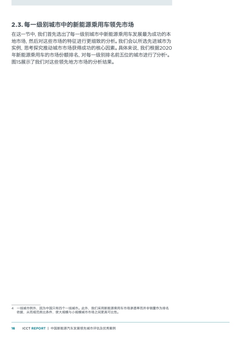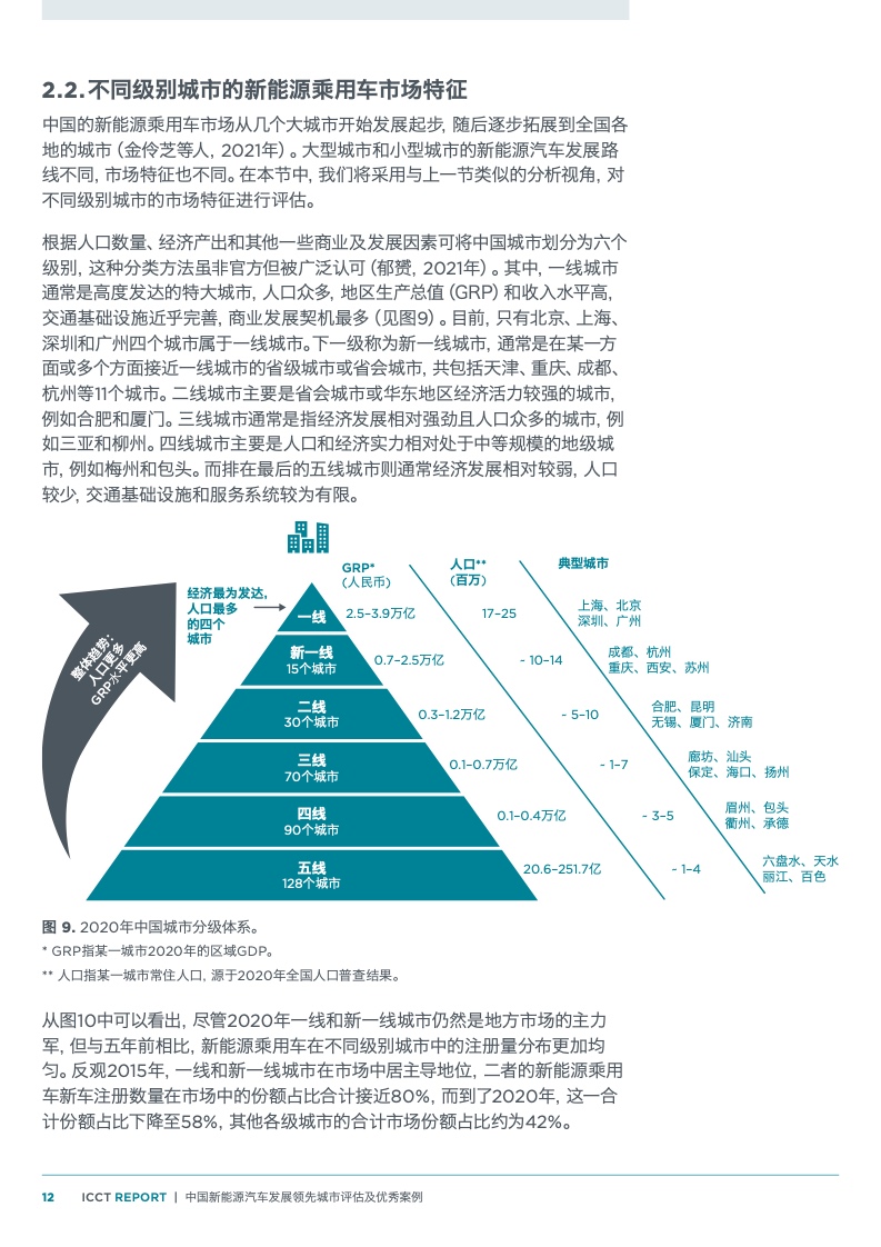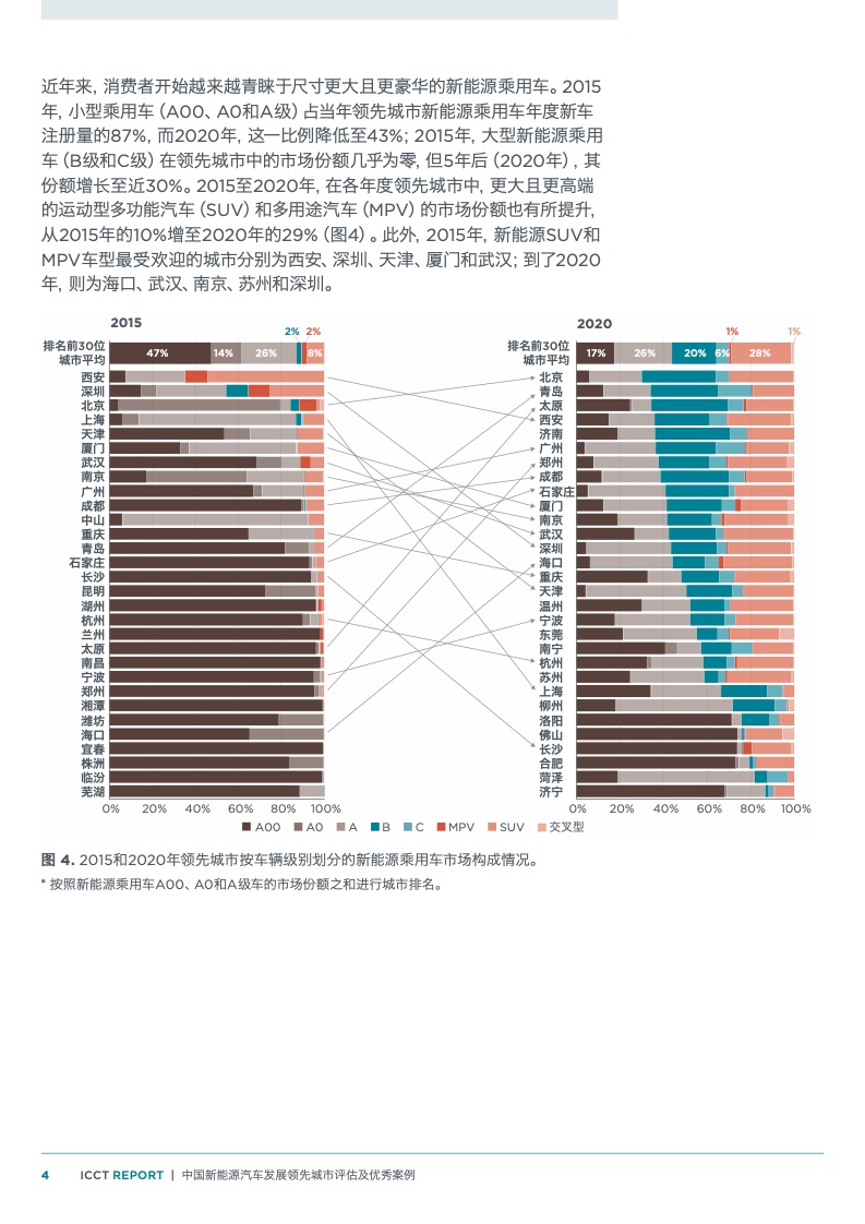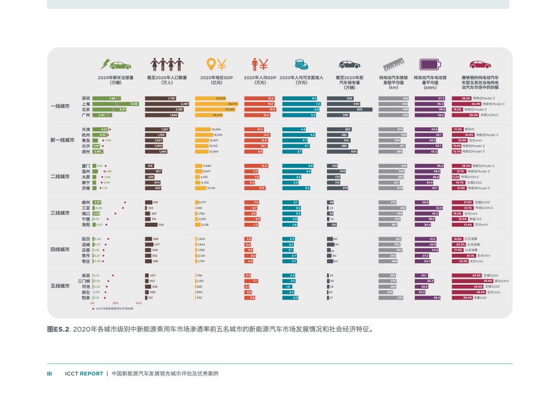 城市是中国新能源汽车发展的前沿阵地,往往在先进车辆技术和充电技术应用、新商业模式拓展,以及政策创新方面担当着先试先行的重要角色。在中国,新能源汽车指纯电动汽车、插电式混合动力汽车和氢燃料电池汽车。本文通过对2015年和2020年中国新能源乘用车和商用车城市级别的市场数据进行分析,评估不同城市级别和车辆类别的新能源汽车发展领军城市,分析细分市场的发展特征,并结合实例解析它们领先表现背后的要素。