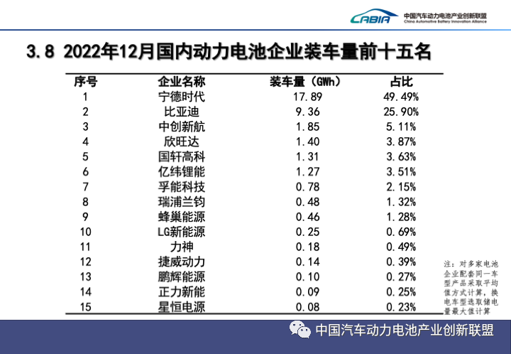 中国汽车动力电池产业创新联盟近日发布了 2022 年 12 月动力电池月度数据。