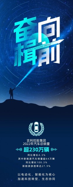 对于2023年,据了解吉利汽车董事会将集团 2023 年的销量目标定为 165 万部,较 2022 年总销量增长约 15%。其中,新能源汽车销量目标较 2022 年总销量增加 100% 以上。