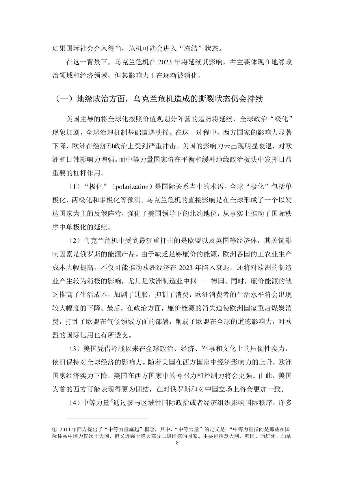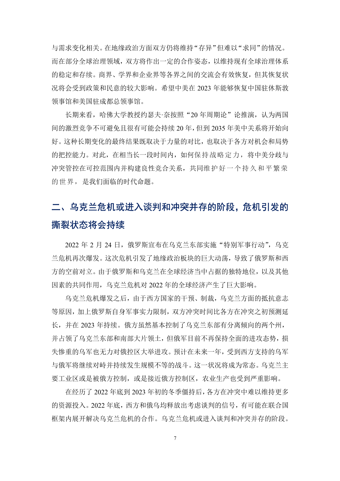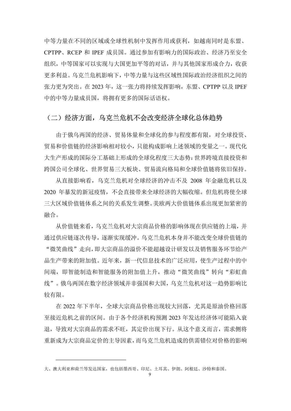 二、乌克兰危机或进入谈判和冲突并存的阶段,有进入“冻结”状态的可能;危机引发的撕裂状态将会持续,但从总体上不会改变经济全球化趋势。