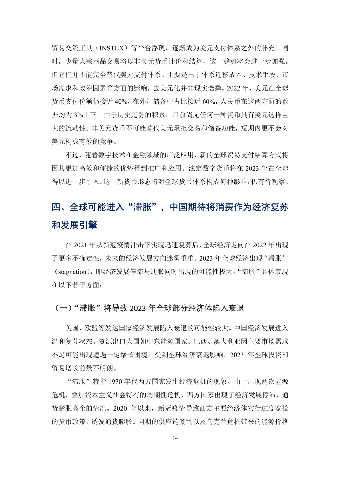 四、全球可能进入“滞胀”,区域合作机制进一步增强;产业链和供应链调整中,供应链将会变短;中国期待将消费作为经济复苏和发展引擎。