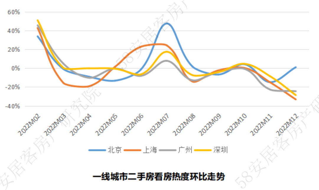 从四个一线城市需求热度数据来看,整体呈现出逐步下滑的态势,在年中四城同时出现了不同幅度的提升,不过随后依旧开始回调,尤其是在12月份,上海、广州、深圳更是深度调整。