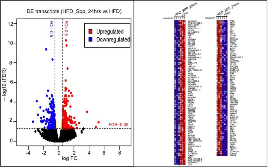▲ Spp病毒对高脂饮食小鼠心肌细胞基因表达的影响