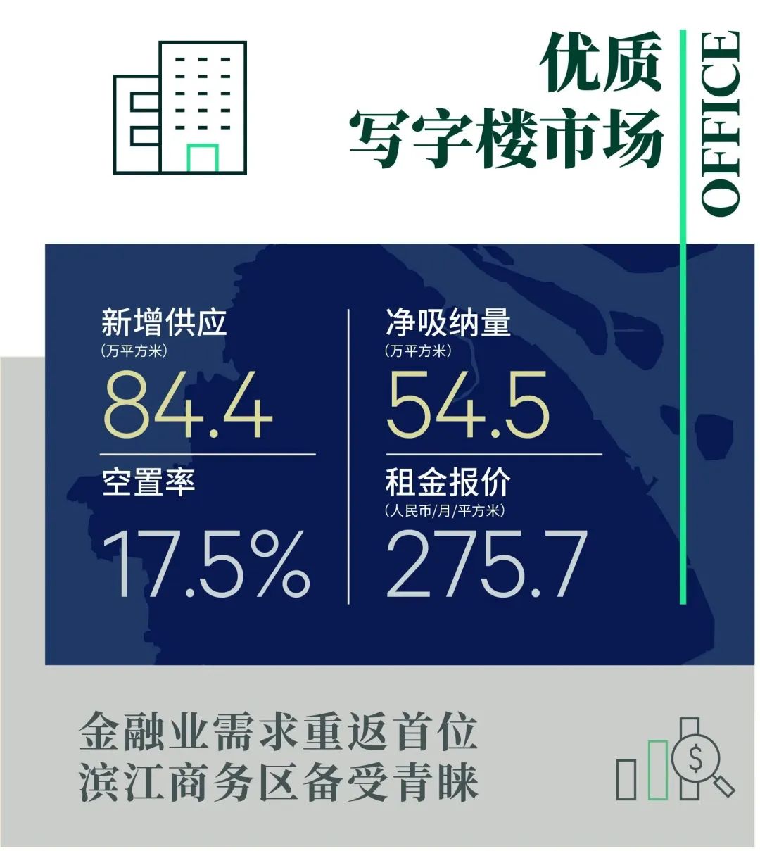 成交区位来看,徐汇滨江-前滩-陆家嘴为代表的滨江商务区,成功吸引最多企业进驻,驱动全市超六成的跨江搬迁需求。金融业仍偏好陆家嘴、世纪大道与花木板块。TMT则聚集徐汇滨江与前滩板块,一方面供应充沛,大面积选项较多,另一方面租金价格优势明显。消费品制造业青睐徐汇滨江与南京西路板块,至此滨江板块全年去化表现亮眼,占比逾三分之一,且有多个独栋产品与可视性佳的项目吸引到总部企业聚集。