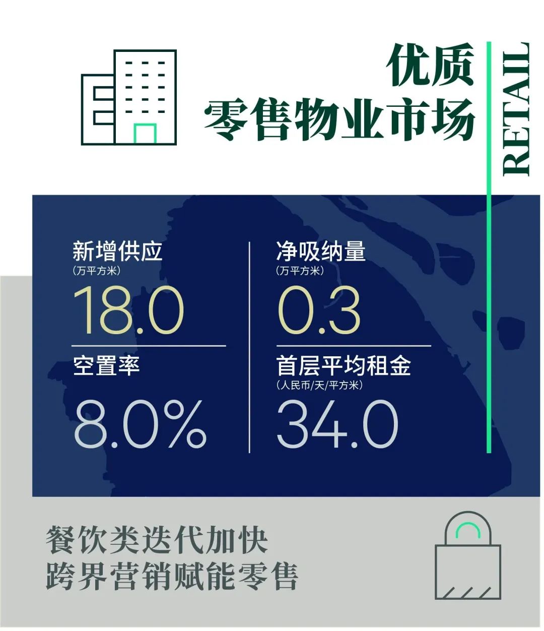 2022年,上海零售物业市场录得4个优质项目入市,商业总体量达18.0万平方米。其中,锦沧文华广场以及张园西区的相继入市,以首店首发为特色引入多样高能级国际品牌,为南京西路商圈再添新意。其中,张园西区于四季度正式对外开放,定位高端商业聚集地,以海派文化为主题,融合文化与品牌创新,打造全新体验消费目的地。此外,苏河湾万象天地落位苏州河沿岸,历史建筑的复建为项目增添了更深的文化底蕴,而包括运动、宠物以及品质生活在内的业态构成则更加突出项目新潮的品牌特色,引得各类消费者前往打卡。至此,上海零售物业市场以各具特色的新项目为起点,重振消费信心,激发市场活力。2022年,全市空置率累计上行1.3百分点至8.0%,全市购物中心首层租金累计下跌3.1%,报每天每平方米人民币34.0元。