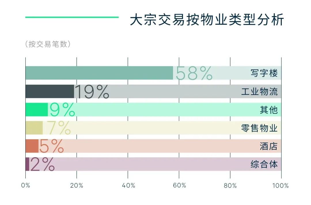 依据交易笔数来看,投资型交易占比较上年进一步提高,达53%。核心增值型仍为投资者最多涉及的投资策略,而看重投资收益率稳定性的险资在今年择机布局增值型与机会型投资机会,以期实现其跨周期投资价值。买家类型方面,全年交易仍以内资为主导,而依据交易金额统计,外资比重于近三年呈递增趋势,截至年末占比近三成,境外买家的持续加码布局也凸显了上海对于全球投资者的吸引力正在回升。另外,跨境投资者中约93%来自地产基金与机构投资者,其偏好物业类型仍以核心拓展区的写字楼及位于成熟板块的商务园区为主,成熟运营的社区零售物业与具备改造条件的长租公寓亦获得不少外资买家的关注。