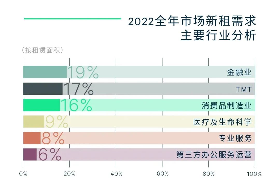 行业需求方面,金融业重返首位,其中以基金、保险、投资管理、信托期货为主的需求持续释放,多为板块内部的升级扩租。上海金融开放持续扩大,金融市场格局日益完善,使得上海金融中心核心功能不断增强。TMT紧随其后,其中以人工智能、大数据为主的新技术、企业资讯服务需求居多。而今年消费品制造业需求规模呈扩大趋势,尤以新能源汽车、奢侈纺织品与化妆品突出,前者顺应科技革命和产业变革,在新一轮扩大内需中大有作为,后两者紧跟消费热点,持续增强对国内需求的适配性和创新力。此外,商务精装办公和轻资产运营的第三方办公空间,年内增量及用户接受度明显提高,市场份额也逐步扩大。