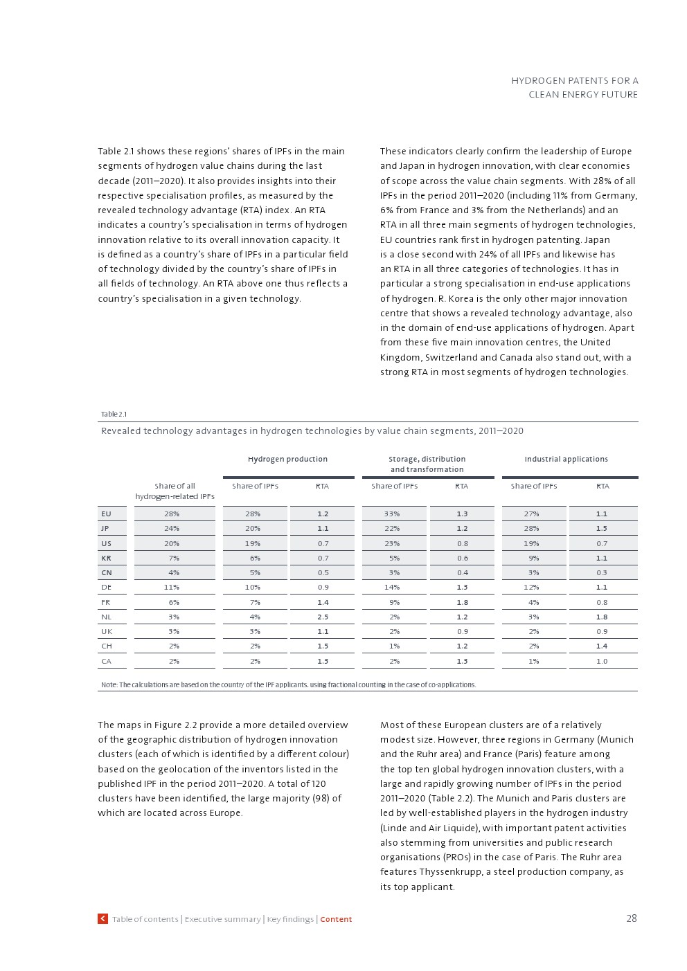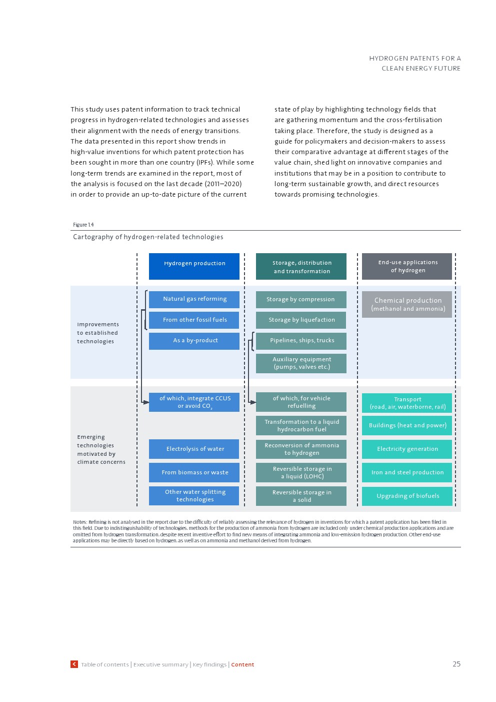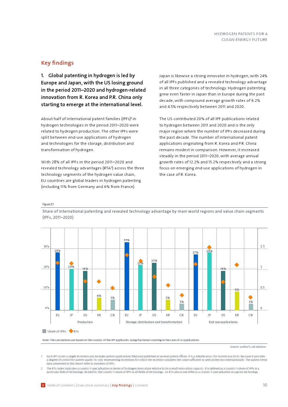 大学和公共研究机构在 2011-2020 年产生了所有与氢相关的国际专利的 13.5%,以法国和韩国为首,重点是电解等低排放制氢方法。