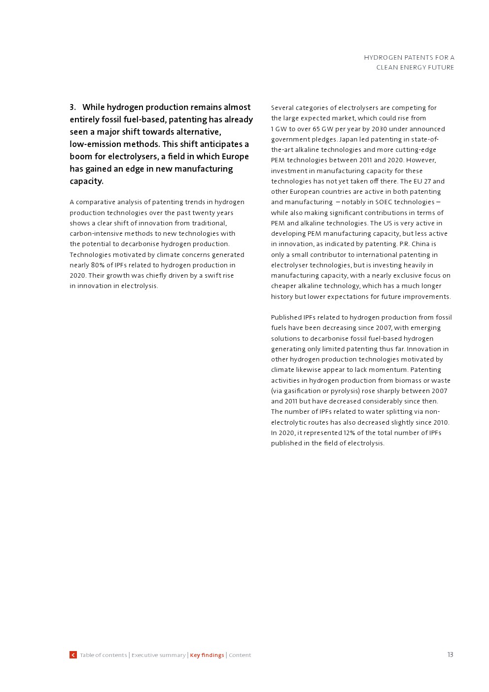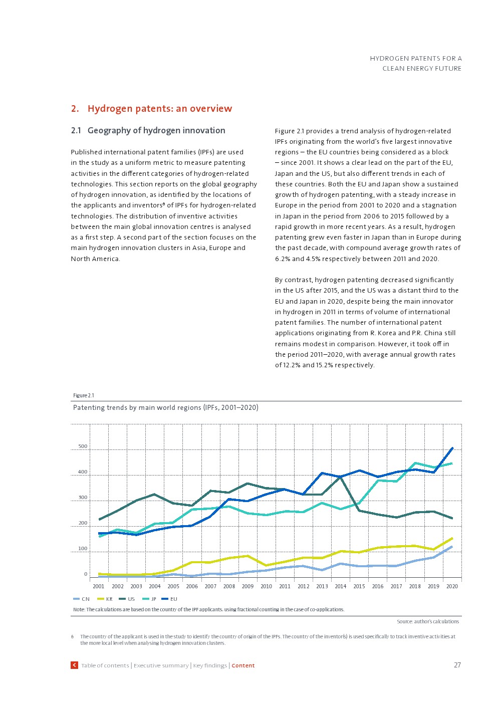 根据欧洲专利局(EPO) 和国际能源署(IEA) 的一项专利联合研究“清洁能源的未来——氢专利”,氢技术的发展正在转向电解等低排放解决方案。