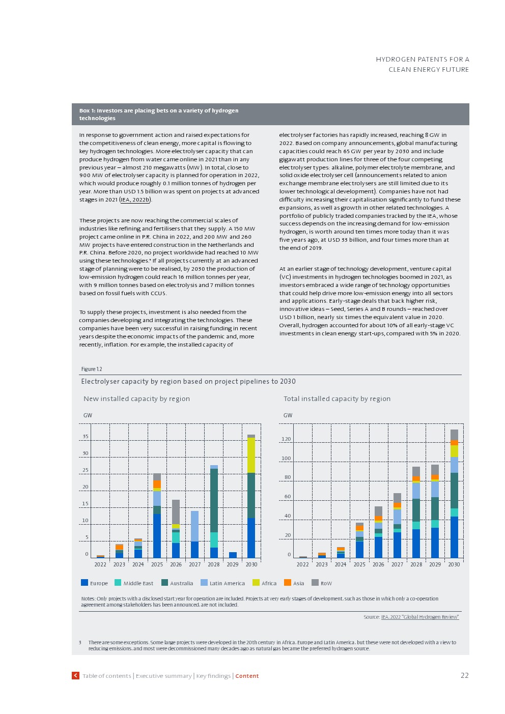 2020年,受气候问题驱动的技术占与制氢相关的所有专利的近 80%,其增长主要是由电解创新的急剧增加推动的。 最具创新性的地区现在正在竞相举办第一个工业推广阶段,数据表明欧洲作为投资新电解槽制造能力的区域正在获得优势。