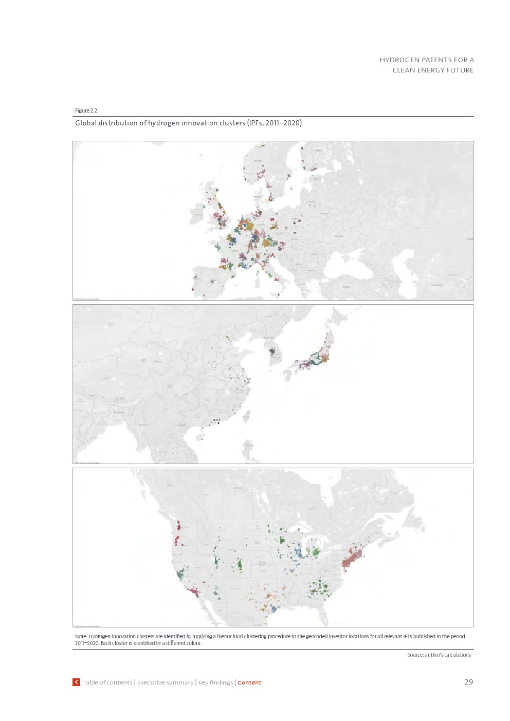 美国拥有所有氢相关专利的 20%,是过去十年国际氢专利申请唯一主要创新中心。在韩国和中国,氢技术的国际专利申请活动仍然不大,但正在增加。除了这五个主要创新中心外,其他产生大量氢专利的国家包括英国、瑞士和加拿大。