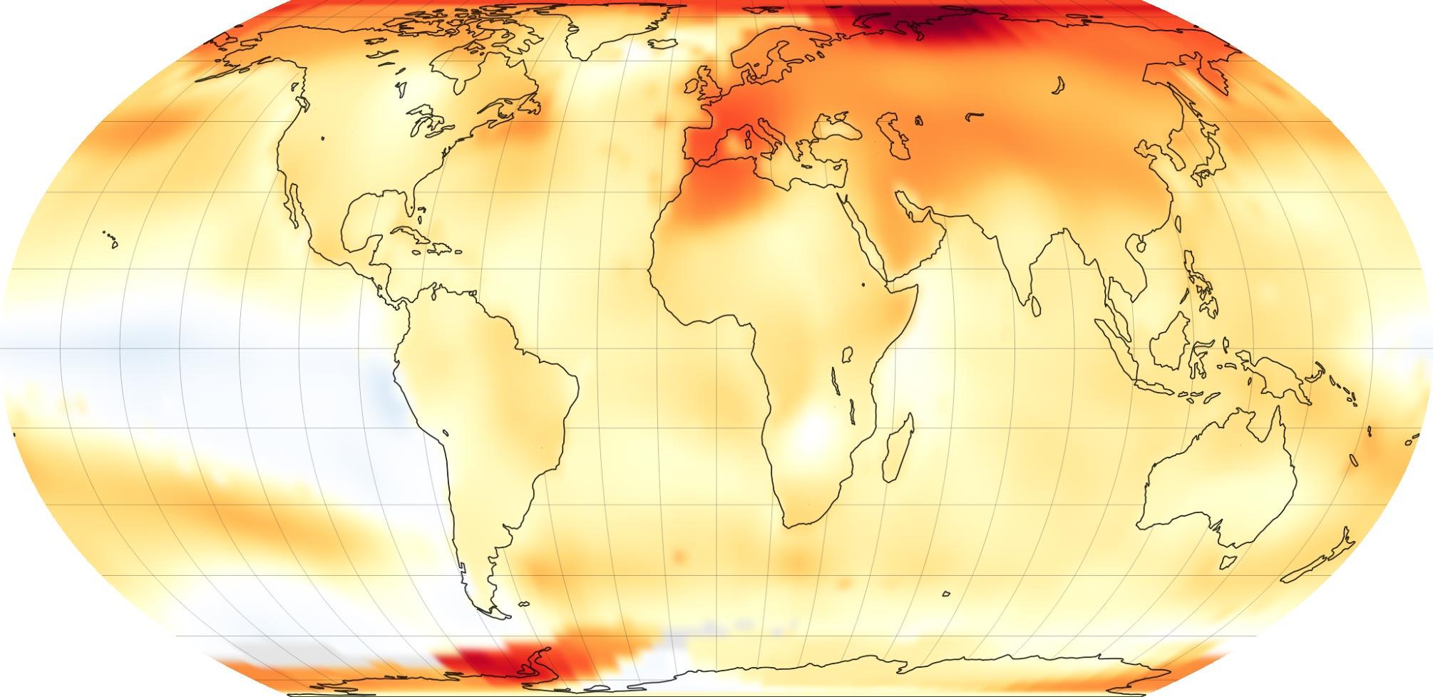 根据美国宇航局的分析,2022年的地球平均表面温度与2015年并列成为历史上第五个最温暖的温度。根据美国宇航局戈达德空间研究所(GISS)的科学家描述,延续地球的长期变暖趋势,2022年的全球气温比美国宇航局基线时期(1951-1980年)的平均气温高0.89摄氏度(1.6华氏度)。
