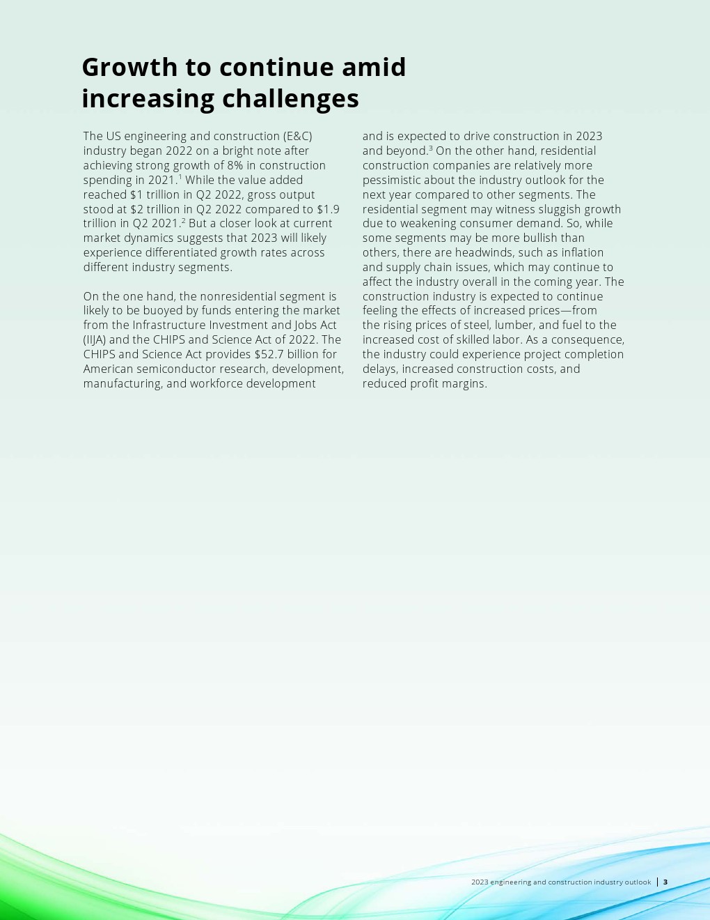 2021 年建筑支出实现 8% 的强劲增长之后,美国工程和建筑行业在 2022 年开局一片光明。但仔细观察当前的市场动态,2023 年不同行业可能会出现差异化的增长率。