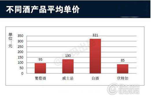 亿邦动力对网购酒类行为进行了调查,数据显示,网购葡萄酒的均价为95元,低于威士忌均价130元,高于伏特加的均价为85元。