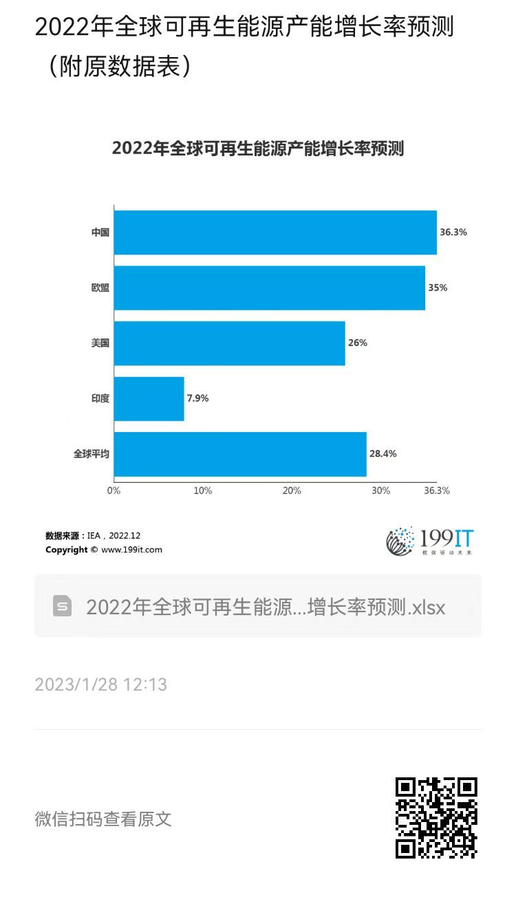 2022年全球可再生能源产能增长率预测(附原数据表) ​​​​