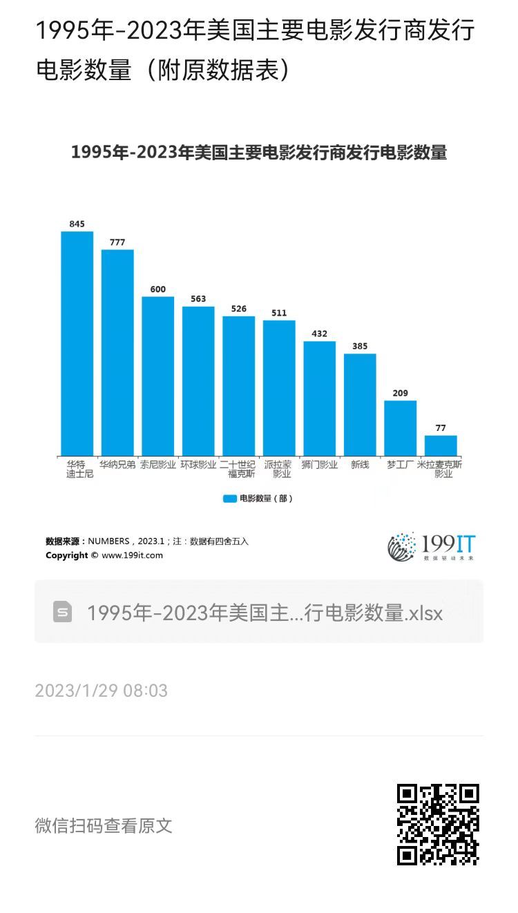 1995年-2023年美国主要电影发行商发行电影数量(附原数据表) ​​​​