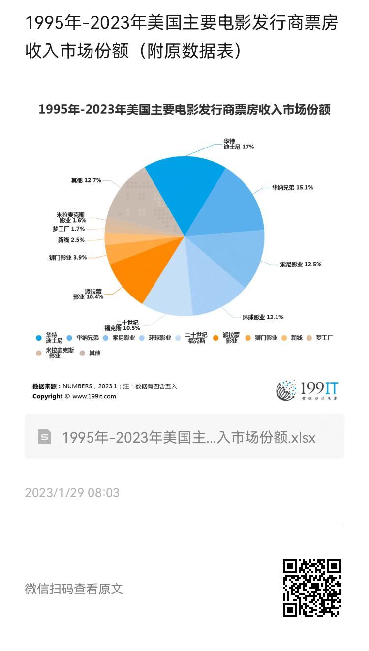 - 1995年-2023年美国主要电影发行商票房收入(附原数据表)