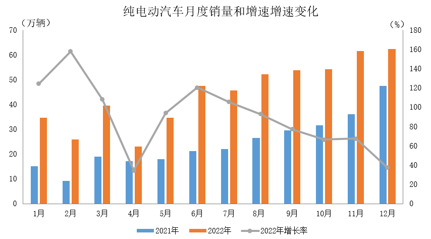 2022 年 12 月,新能源汽车产销继续保持高速增长,再创历史新高,分别达到 79.5 万辆和 81.4 万辆,同比均增长 51.8%。