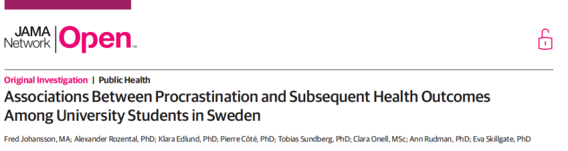 近日,瑞典索菲亚赫美大学学院的Fred Johansson发表在JAMA Network Open上的文章表明,拖延的后续,不太妙[1]。