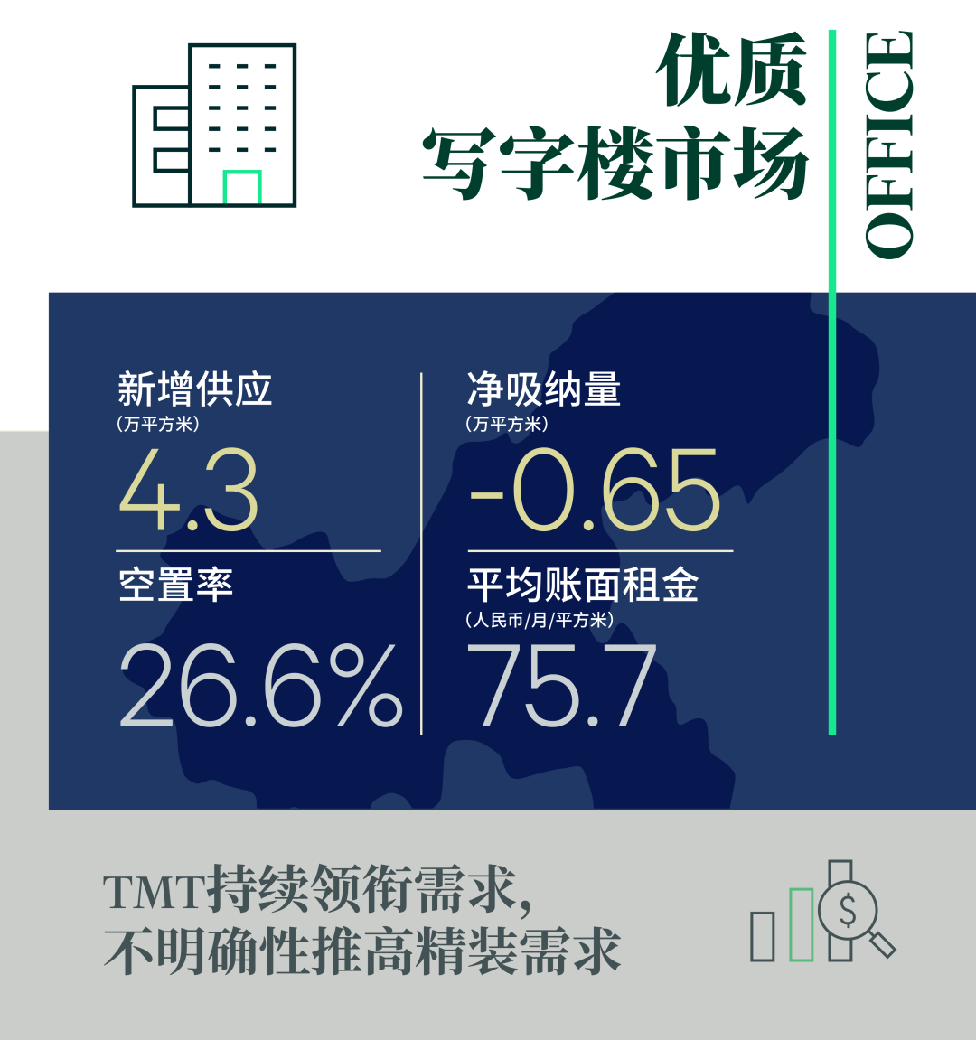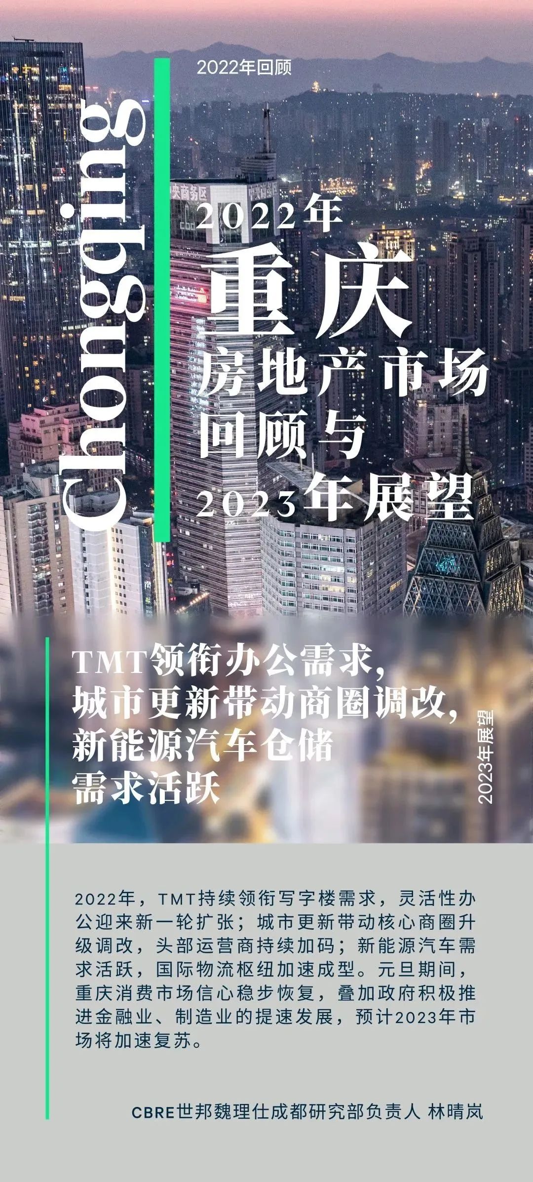 展望2023年,重庆优质写字楼市场新增供应回升,约53万平方米的楼宇计划交付。在经济持续复苏的基调下,预计写字楼需求或将于二季度反弹,改善市场供需矛盾关系,但租金回调仍面临一定挑战。