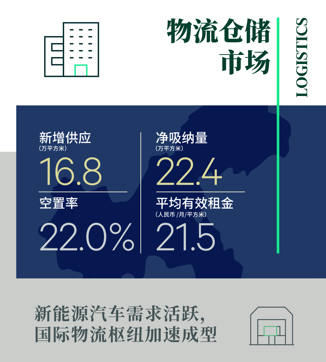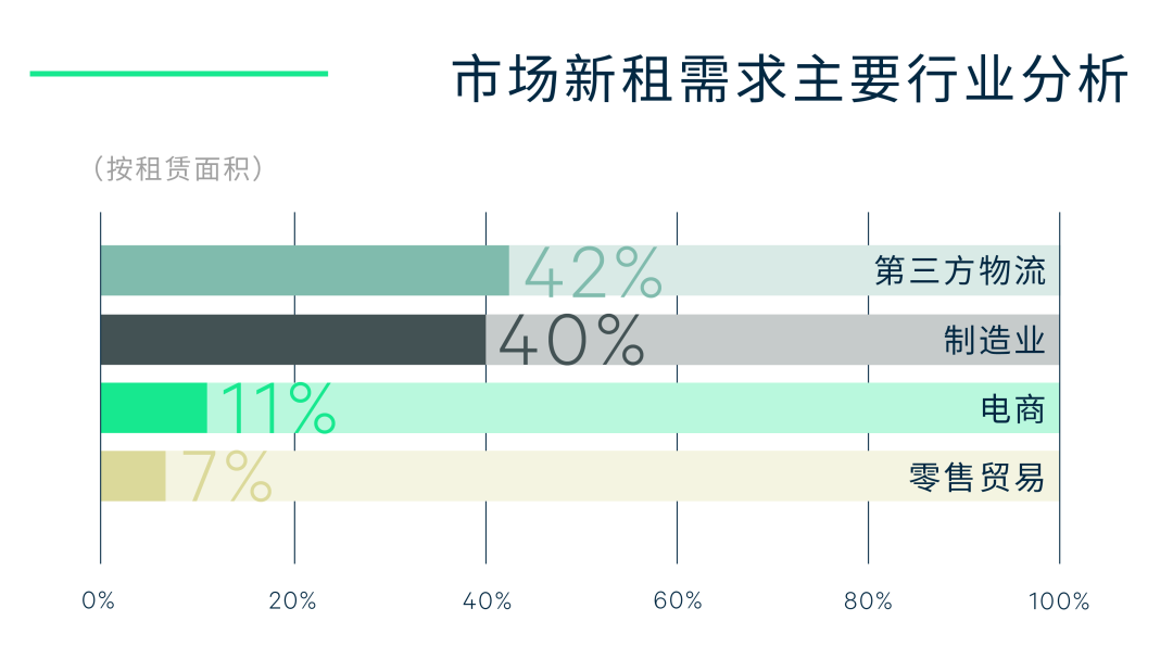 按全年新增需求看,三方物流、制造业及电商主导去化,分别占比42.4%、39.9%及11.1%,而制造业中又有约82.5%为汽车及零部件的相关物流需求。值得注意的是,全年汽车制造相关需求增长最为显著,需求绝对值同比增长18.5%。目前,在“工业立市”宏观大背景之下,重庆正积极推动新能源汽车产业向研发、制造、市场、运营等全产业链的提速,全年吸引包括理想、长安、比亚迪等头部企业在重庆新建基地、研发电池等一系列的投资加码。伴随着重庆积极打造中国智能网联新能源汽车生态城,继而有望在中长期持续支撑相关仓储需求稳步增长。
