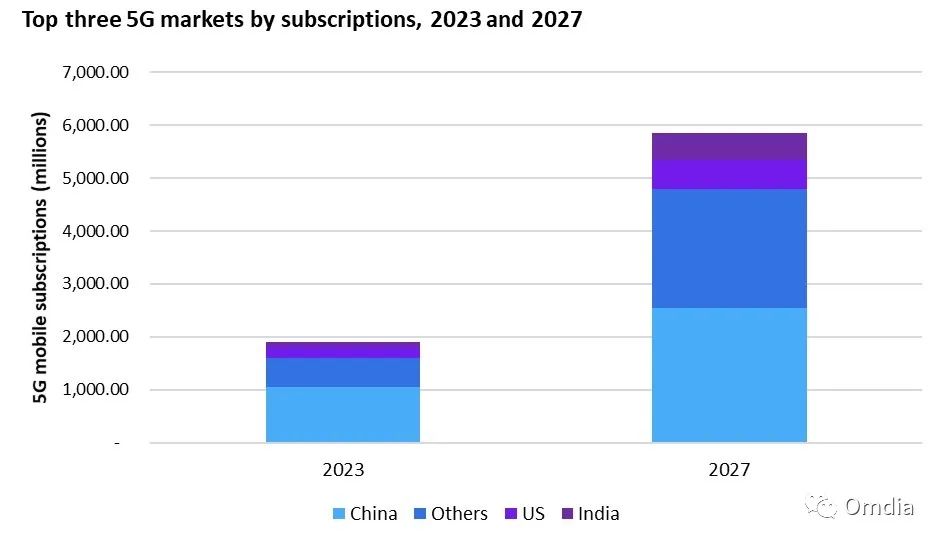 许多即将开通的5G网络将来自非洲、中亚&南亚以及拉美地区的低收入市场。值得注意的是,到2023年底,印度有望成为全球第三大5G市场(按用户数量计算)。