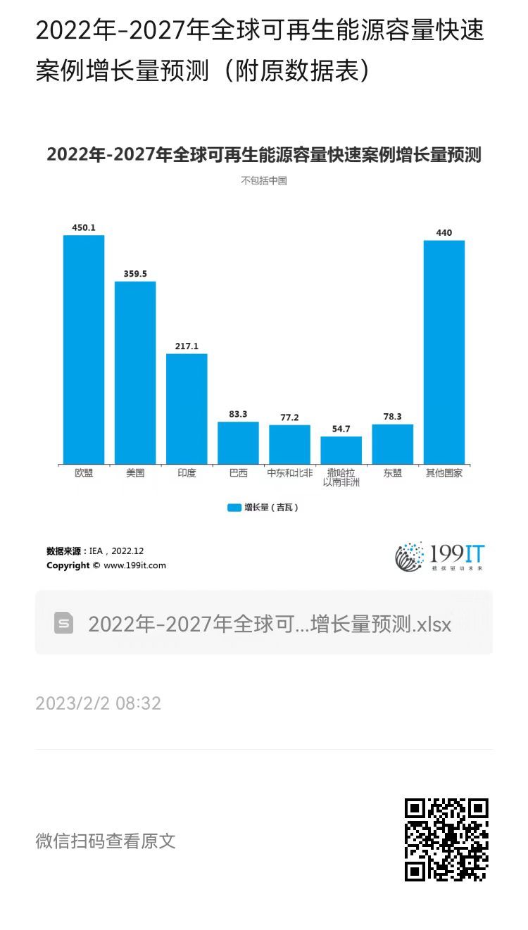 2022年-2027年全球可再生能源容量快速案例增长量预测(附原数据表) ​​​​