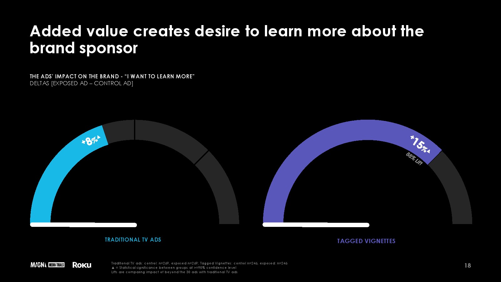 Roku Original Vignettes 带来三倍的购买意向:Roku Originals Vignettes 的购买意向增长10%,传统电视广告的购买意向仅增长 3%。
