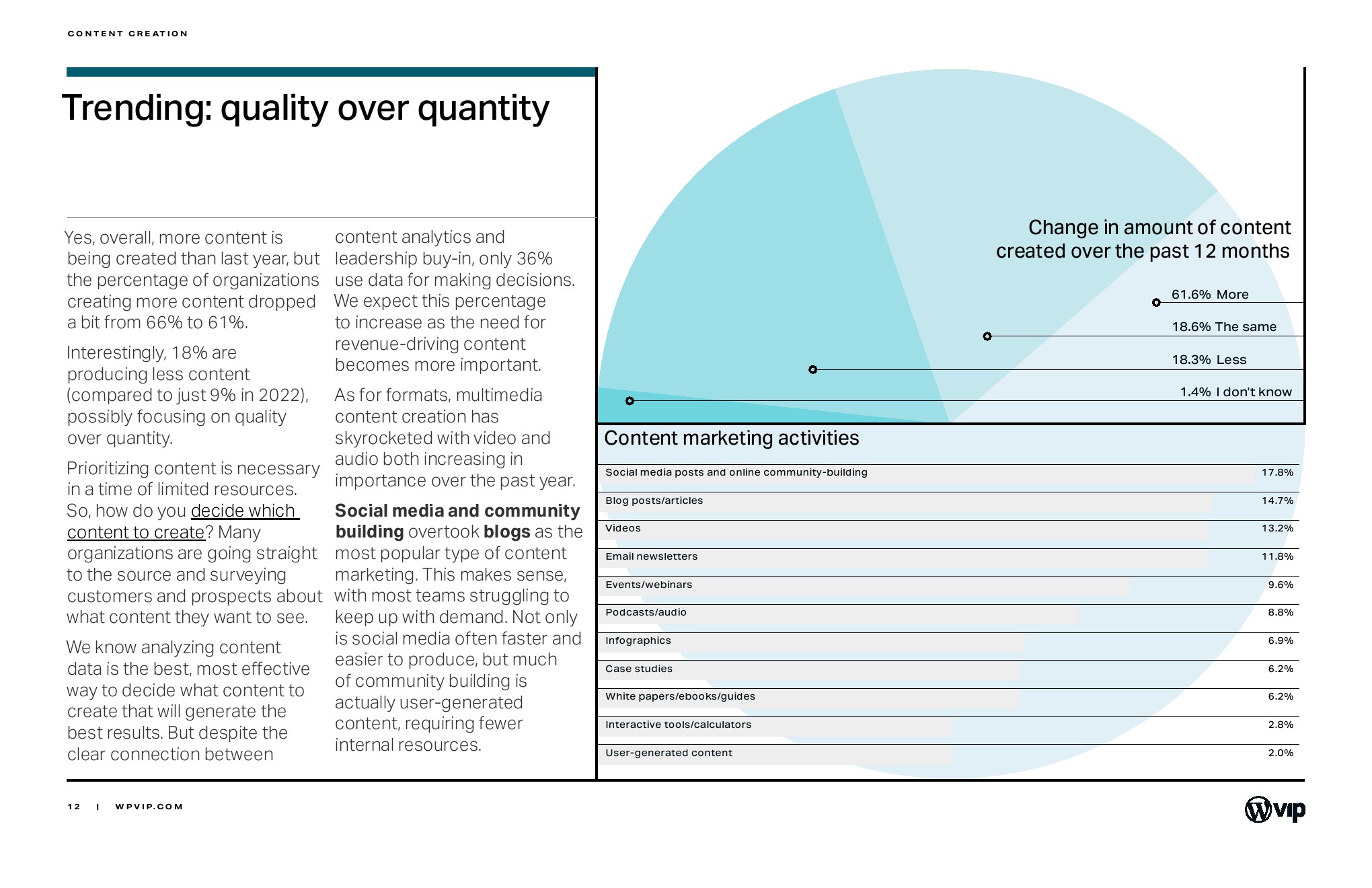 WPVIP发布了“2023年内容营销报告”。营销团队仍然只占企业总人数的一小部分。尽管人们担心通货膨胀和利率上升,但这些团队在很大程度上在继续发展。更有希望的是,与 2022 年相比,内部内容创作者的数量将大幅增长。